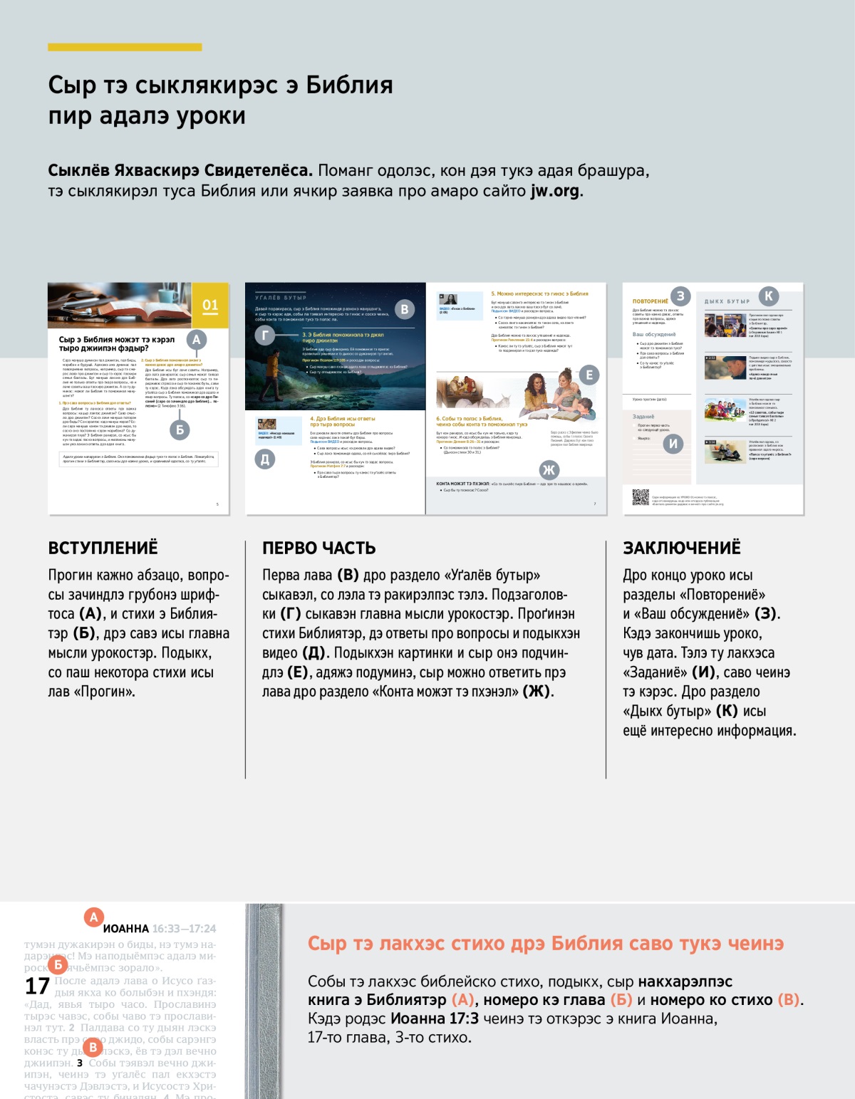 Прогин кажно абзацо, вопросы зачиндлэ грубонэ шрифтоса (А), и стихи э Библиятэр (Б), дрэ савэ исы главна мысли урокостэр. Подыкх, со паш некотора стихи исы лав «Прогин».