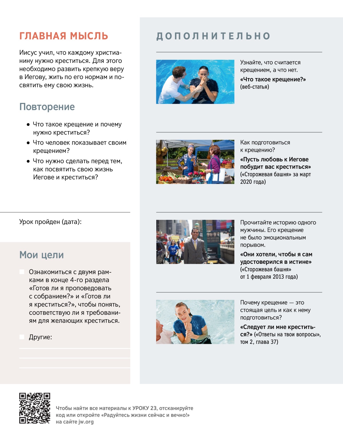«Пусть любовь к Иегове побудит вас креститься» («Сторожевая башня» за март 2020 года)