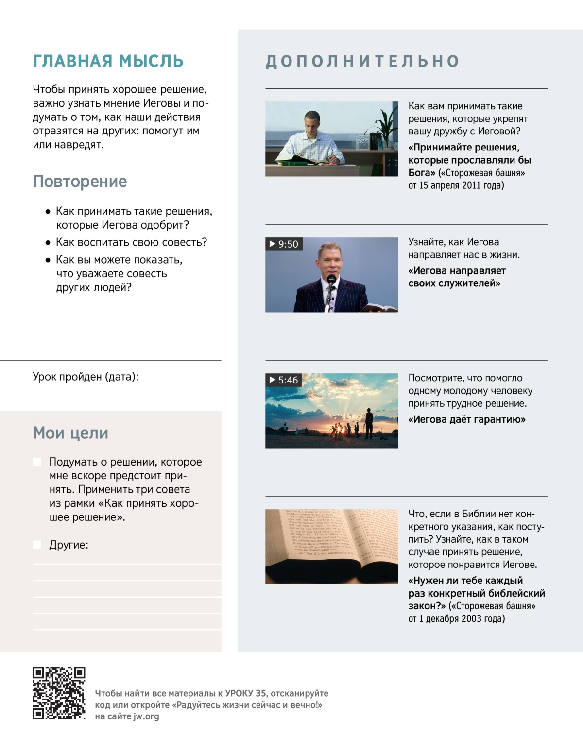 Посмотрим на практике, как библейские принципы и наша совесть помогают в принятии решений.