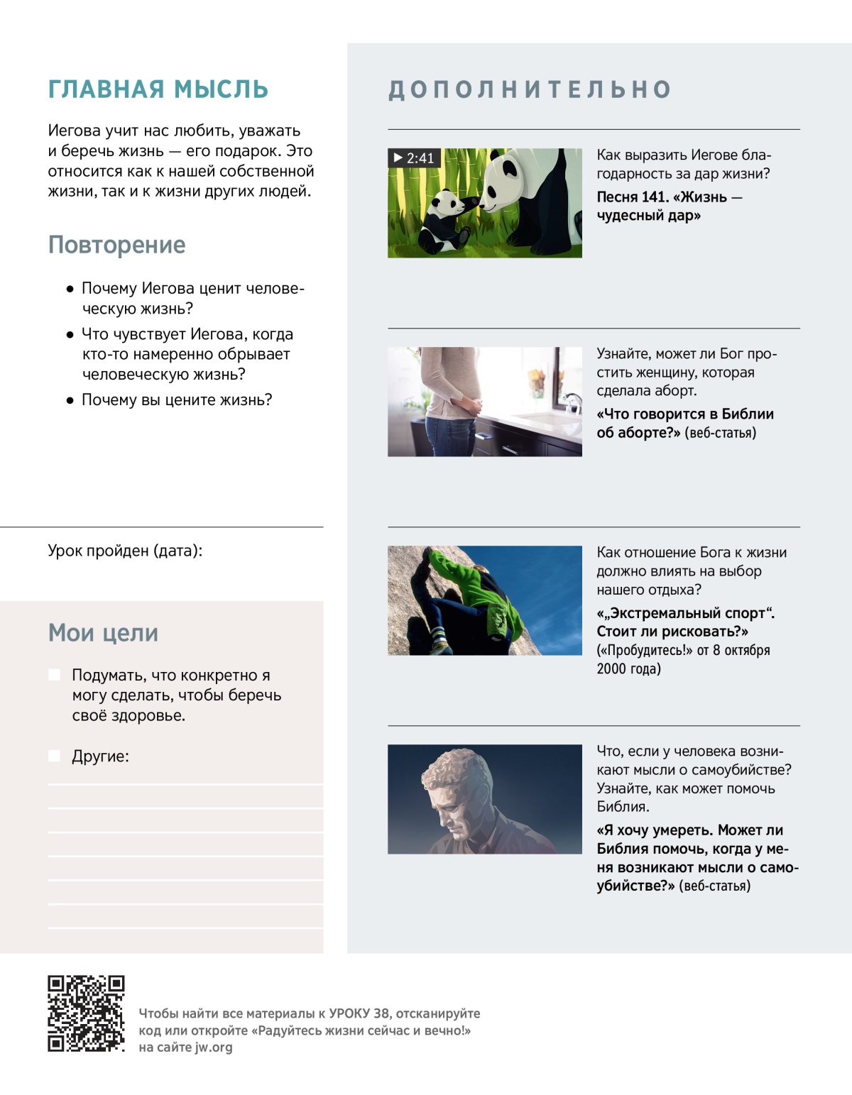 Иегова учит нас любить, уважать и беречь жизнь — его подарок. Это относится как к нашей собственной жизни, так и к жизни других людей.