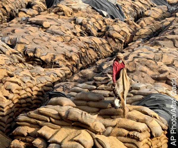 Ho sa tsotellehe ho phahama ha tlhahiso ea lijo ka liphesente tse ka bang 50 lilemong tse 20 tse fetileng, le lithane tse limilione tse 71 tsa raese le koro tse bokeletsoeng, India e ntse e thatafalloa ke ho fepa batho ba eona. Ke karolo e ka etsang 40 lekholong feela ea lijo tseo tse bokeletsoeng e fuoang batho ba India. Bobolu le ho senngoa ha lijo ke tse ling tsa lintho tse bakang mathata.