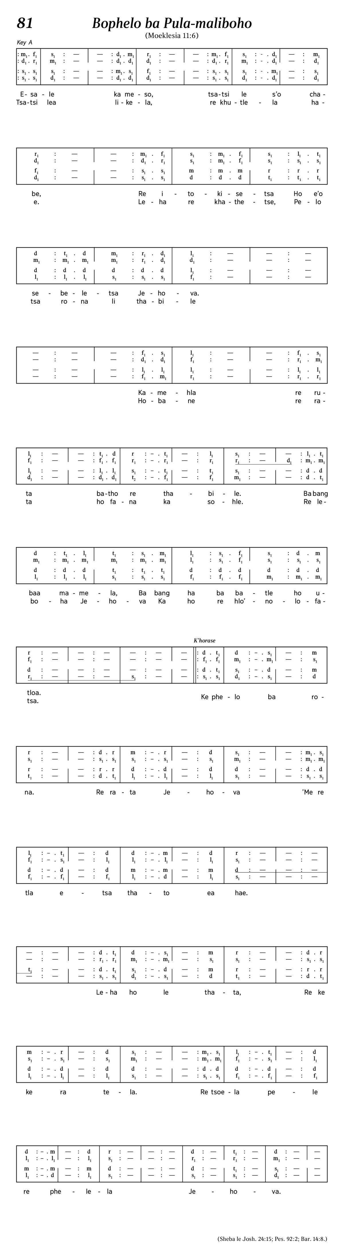1. Esale ka meso, tsatsi le s’o chabe,