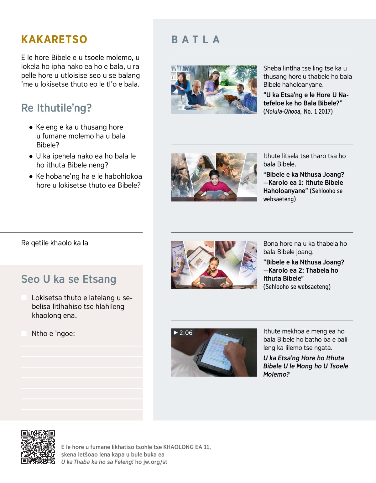 “Bibele e ka Nthusa Joang?—Karolo ea 2: Thabela ho Ithuta Bibele” (Sehlooho se websaeteng)