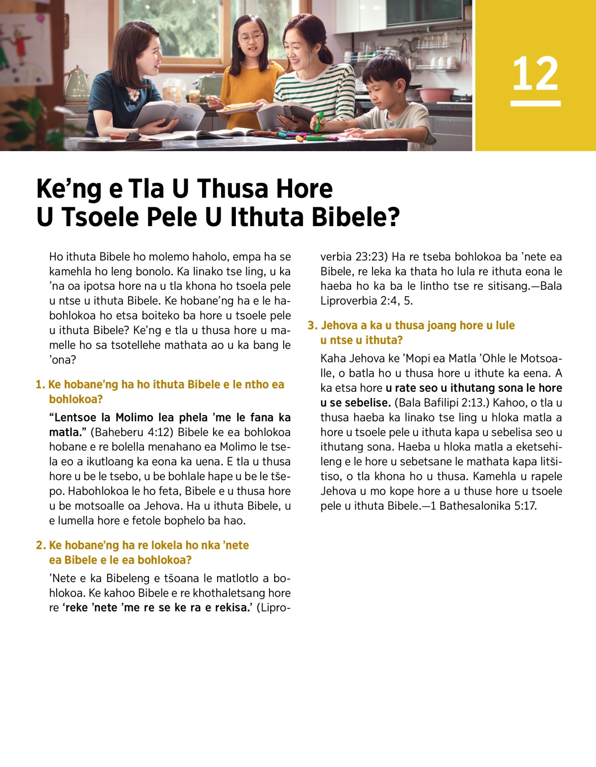 MOTHO A KA ’NA A RE: “Ke hobane’ng ha u ithuta Bibele?”