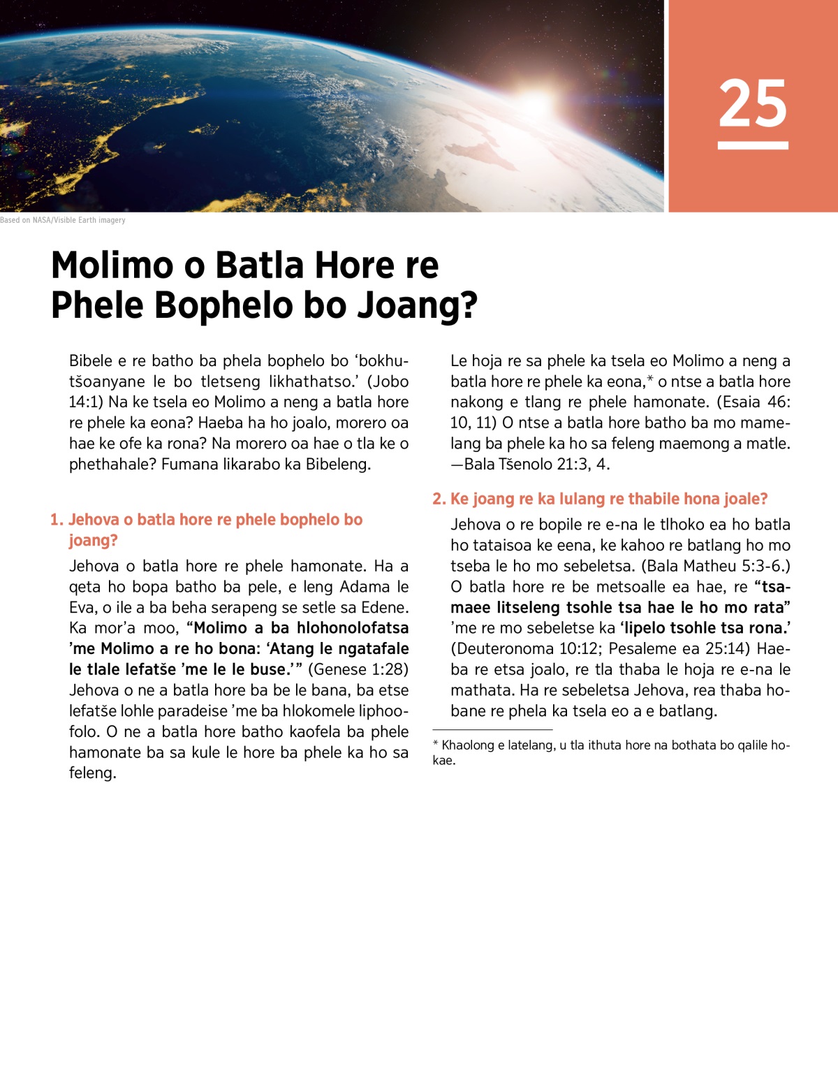 1. Jehova o batla hore re phele bophelo bo joang?