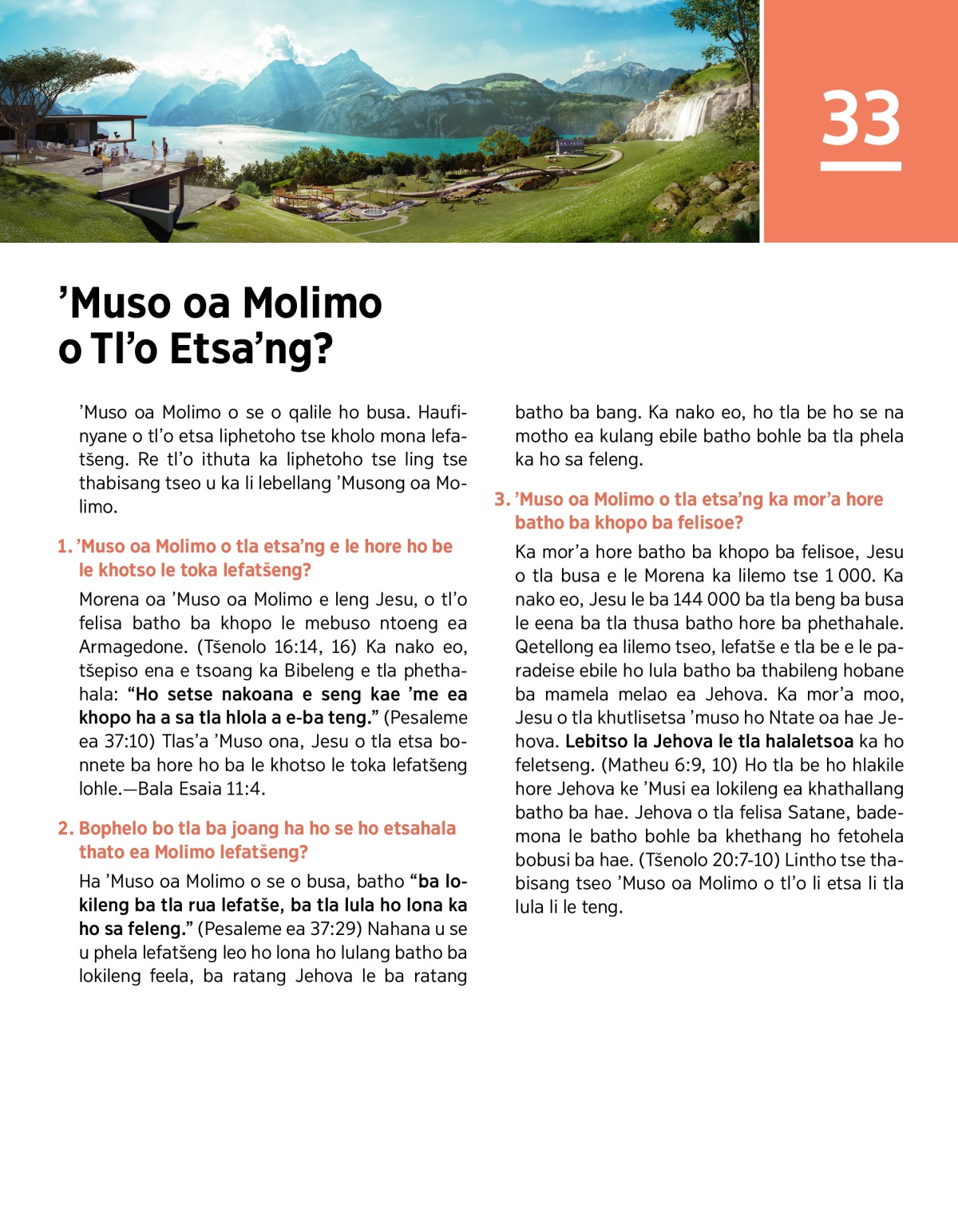 Khaolo ea 33. Batho ba lulang paradeiseng lefatšeng.