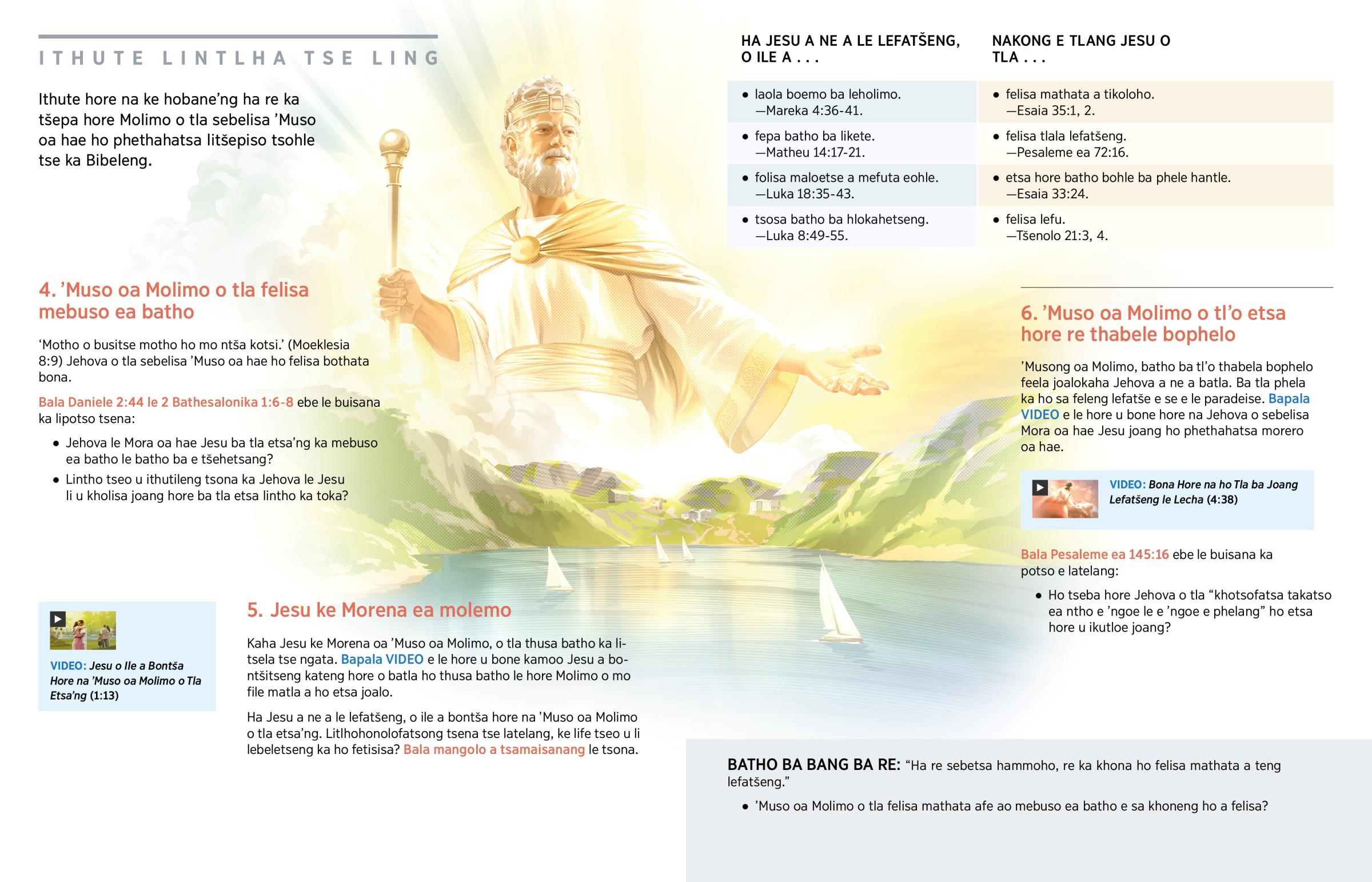 Kaha Jesu ke Morena oa ’Muso oa Molimo, o tla thusa batho ka litsela tse ngata. Bapala VIDEO e le hore u bone kamoo Jesu a bontšitseng kateng hore o batla ho thusa batho le hore Molimo o mo file matla a ho etsa joalo.