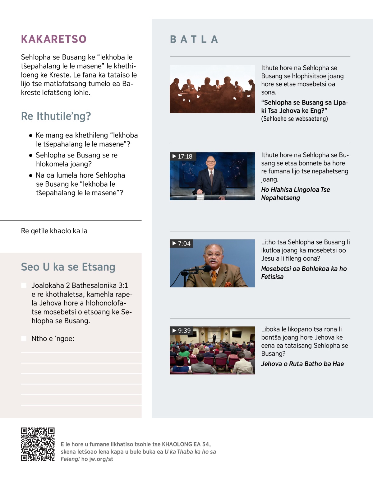“Sehlopha se Busang sa Lipaki Tsa Jehova ke Eng?” (Sehlooho se websaeteng)