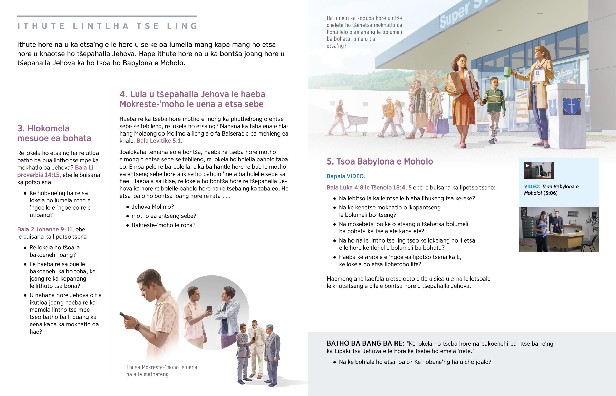 Bala Luka 4:8 le Tšenolo 18:4, 5 ebe le buisana ka lipotso tsena: