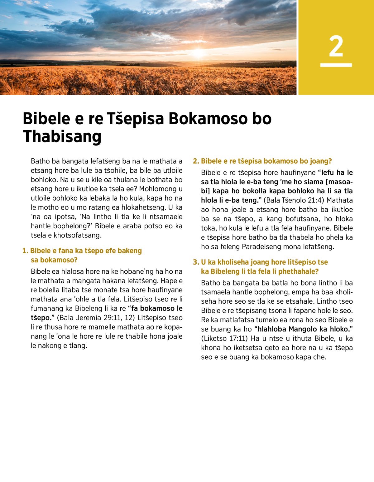 2. Bibele e re tšepisa bokamoso bo joang?