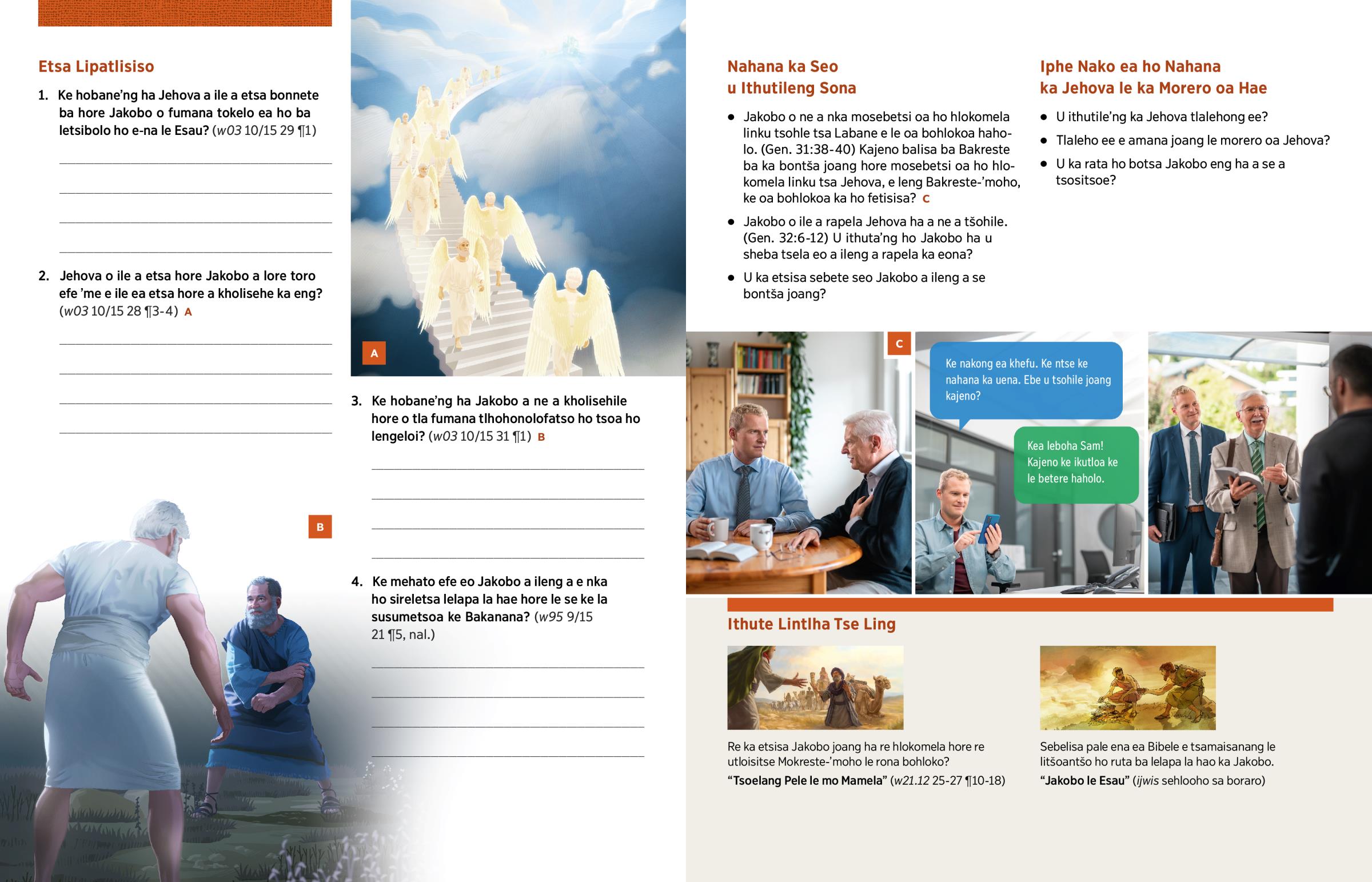 1. Ke hobane’ng ha Jehova a ile a etsa bonnete ba hore Jakobo o fumana tokelo ea ho ba letsibolo ho e-na le Esau? (w03 10/15 29 ¶1)