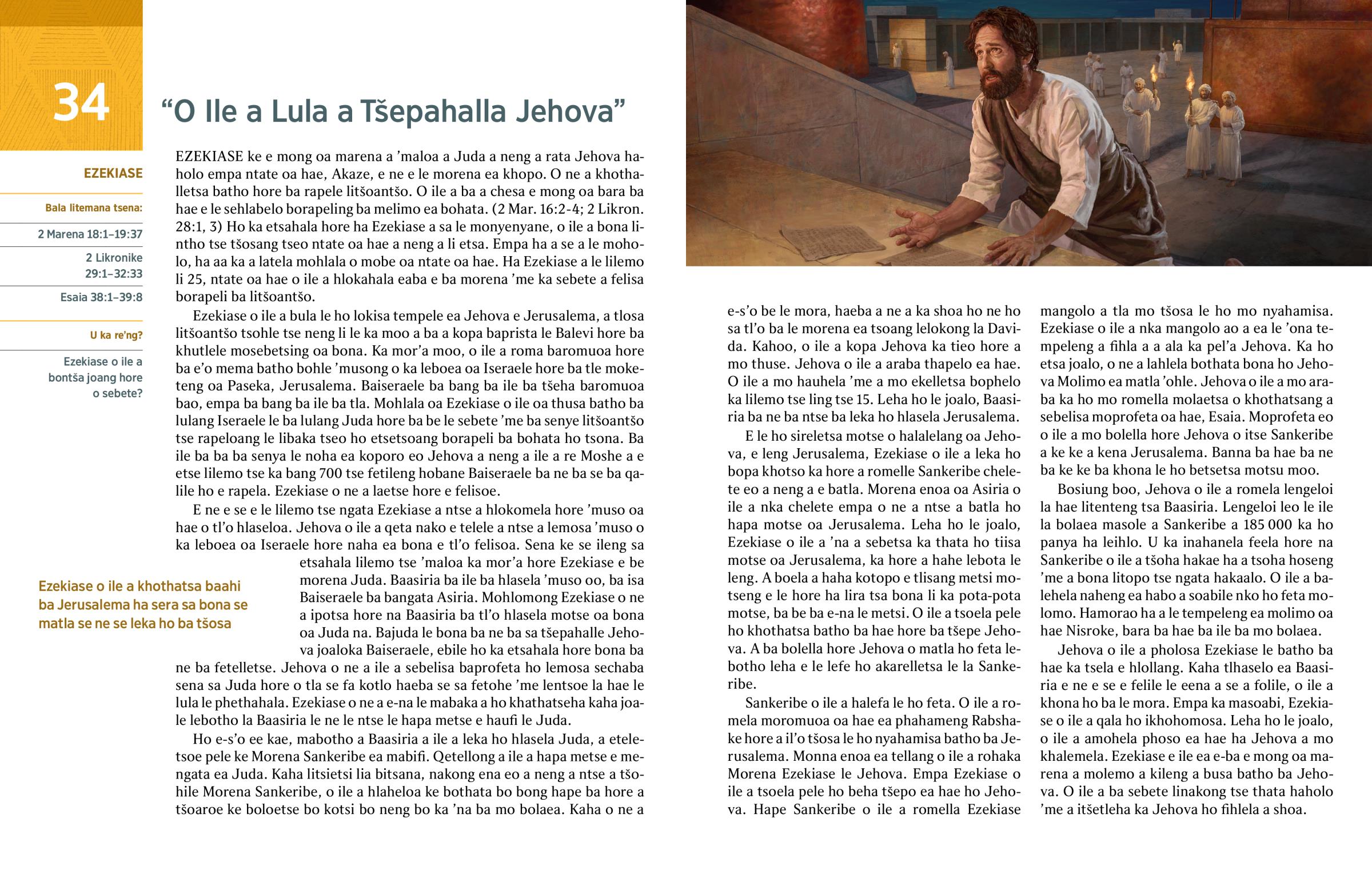 Jehova o ile a pholosa Ezekiase le batho ba hae ka tsela e hlollang. Kaha tlhaselo ea Baasiria e ne e se e felile le eena a se a folile, o ile a khona ho ba le mora. Empa ka masoabi, Ezekiase o ile a qala ho ikhohomosa. Leha ho le joalo, o ile a amohela phoso ea hae ha Jehova a mo khalemela. Ezekiase e ile ea e-ba e mong oa marena a molemo a kileng a busa batho ba Jehova. O ile a ba sebete linakong tse thata haholo ’me a itšetleha ka Jehova ho fihlela a shoa.