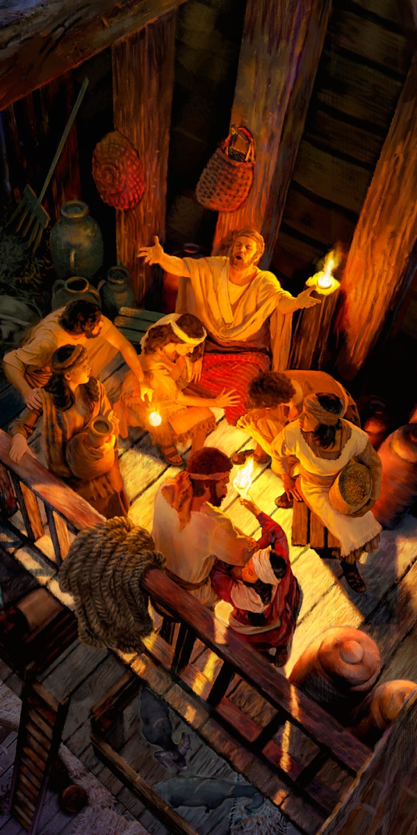 E tlameha ebe Noe o ile a leboha haholo ha a sheba lelapa la hae le ratehang—e leng mosali oa hae ea tšepahalang le bara ba hae ba sebete hammoho le basali ba bona. Nakong eo e thata, e tlameha ebe o ile a tšeliseha ha a bona batho bao a neng a ba rata ka ho fetisisa ba e-na le eena. Kaofela ha bona ba ne ba sireletsehile. Ha ho pelaelo hore o ile a etella lelapa la hae pele ka thapelo ea ho leboha, a phahamisitse lentsoe e le hore ba mo utloe har’a lerata leo.