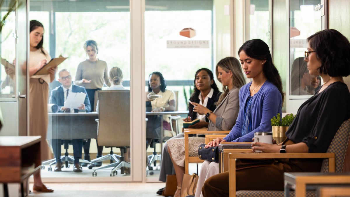 a TLHALOSO EA SETŠOANTŠO: Morali oa bo rona ea batlang mosebetsi o etsa thapelo ka pelong ha a ntse a emetse ho hlahlobeloa mosebetsi.
