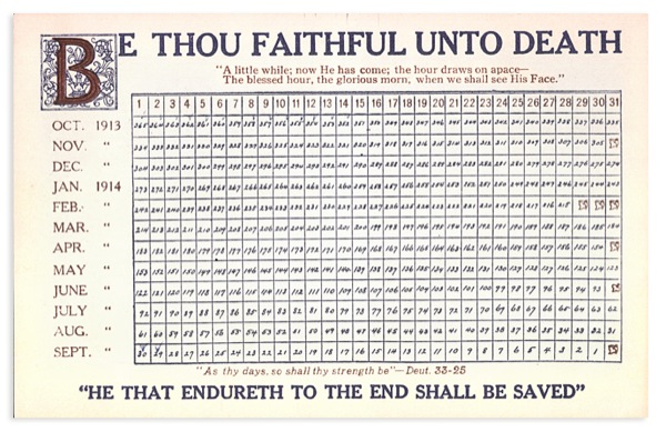 Ba bang ba ne ba sebelisa karete ea “Be Thou Faithful Unto Death” eo ho eona ba neng ba tšoaea matsatsi a setseng, ho bontša hore ba ikemiselitse ho tšepahala ho fihlela qetellong