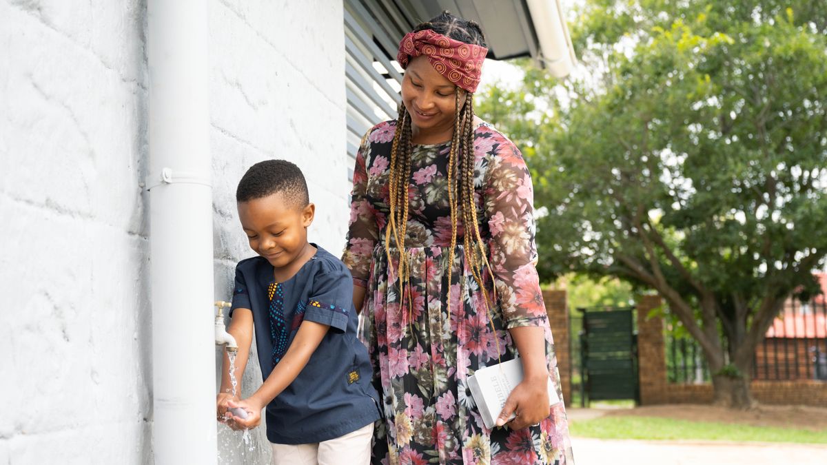 Morali oa bo rona oa Afrika Boroa le mora oa hae ba hlapa matsoho ka metsi a pula