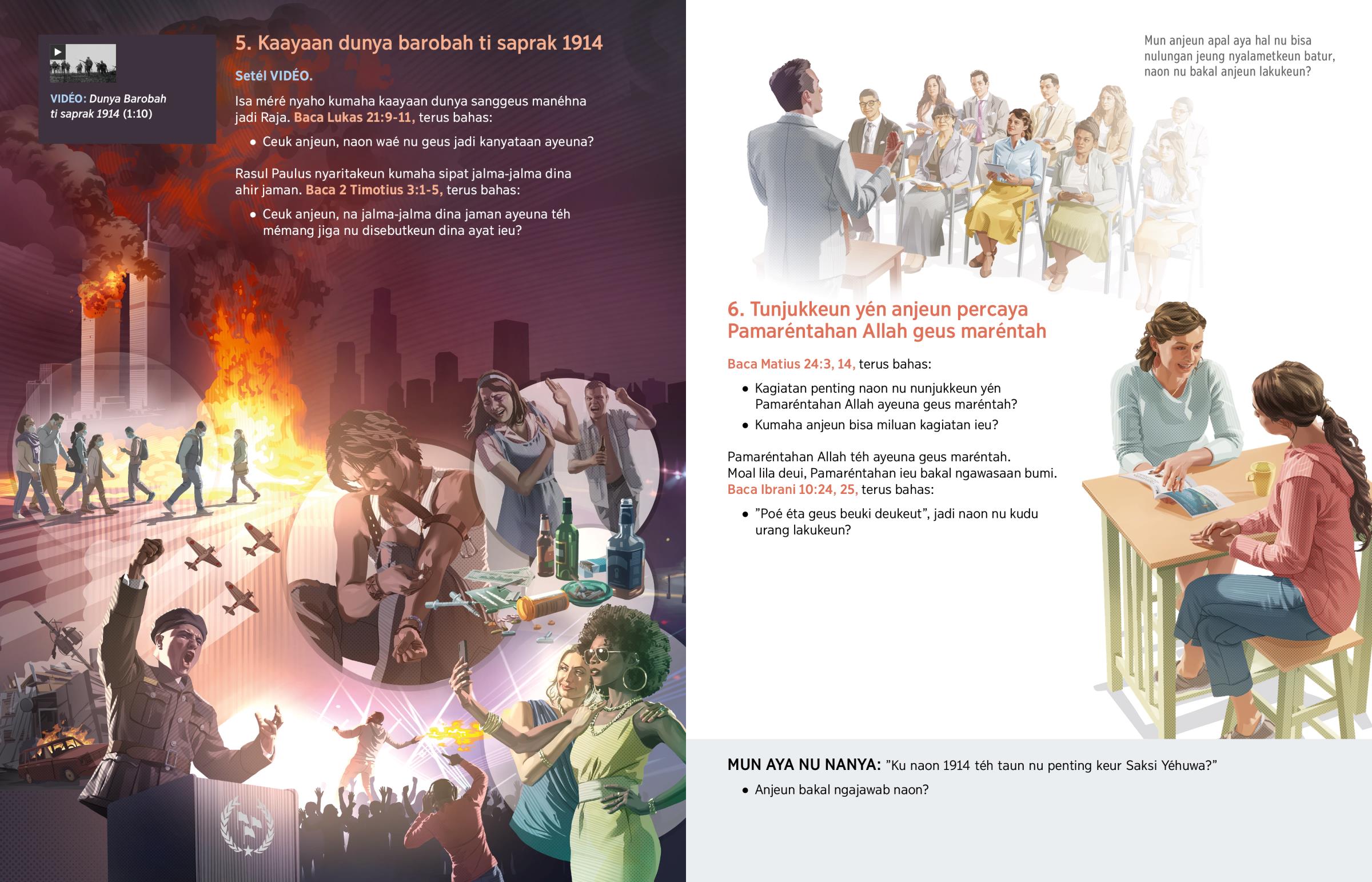 Pamaréntahan Allah téh maréntah di sorga ti taun 1914. Ti saprak harita, waktu keur pamaréntahan manusa téh geus téréh béak. Maksudna, pamaréntahan manusa geus téréh disingkirkeun. Urang apal ti mana? Hayu bahas nubuat Alkitab ngeunaan Pamaréntahan Allah. Terus, urang tingali kumaha kaayaan dunya sarta sikep jalma-jalma ti saprak 1914.