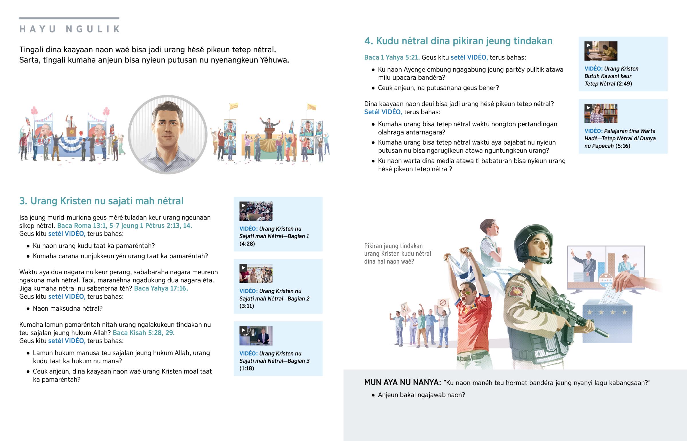 Tingali dina kaayaan naon waé bisa jadi urang hésé pikeun tetep nétral. Sarta, tingali kumaha anjeun bisa nyieun putusan nu nyenangkeun Yéhuwa.