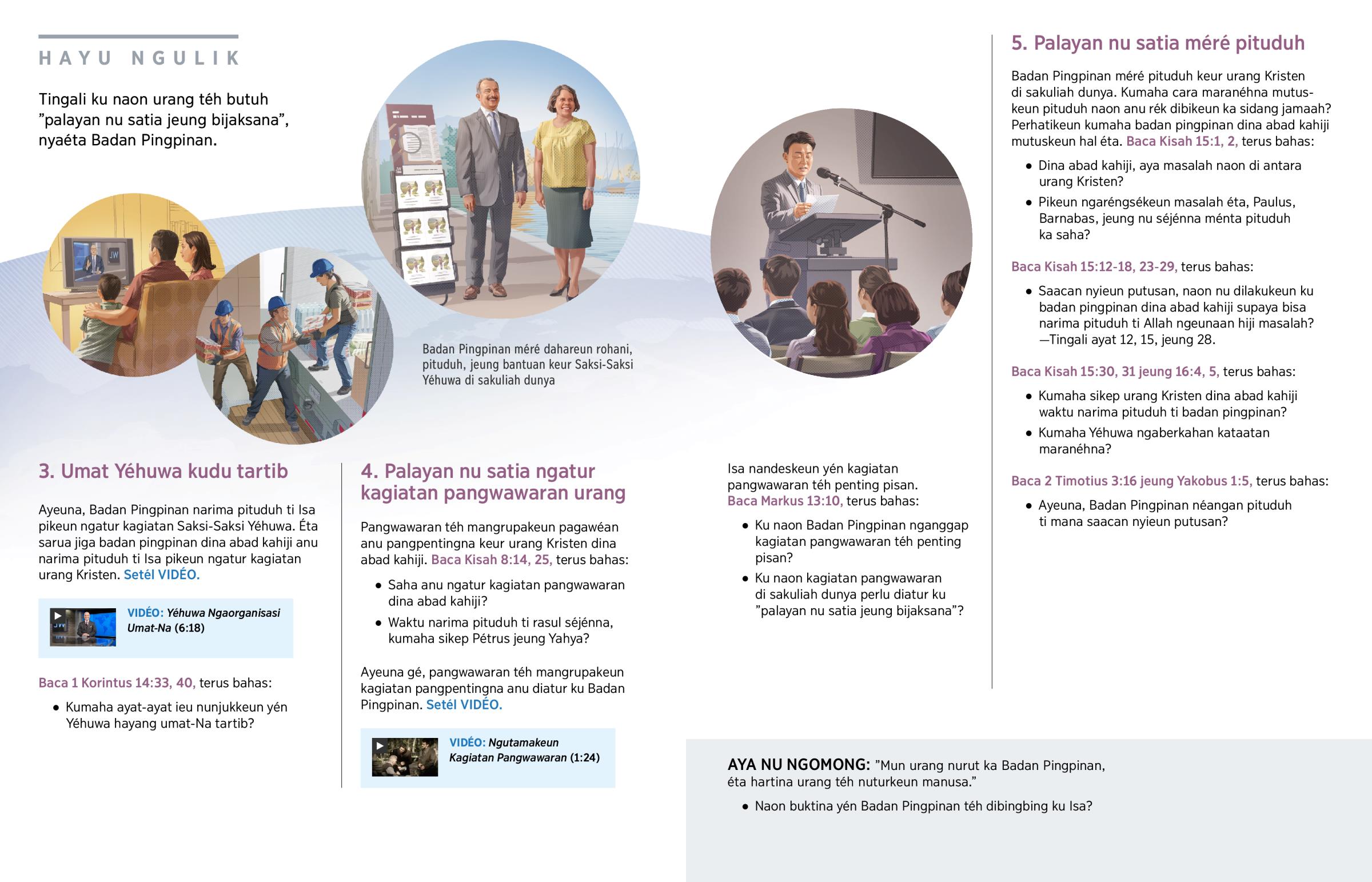 Saacan nyieun putusan, naon nu dilakukeun ku badan pingpinan dina abad kahiji supaya bisa narima pituduh ti Allah ngeunaan hiji masalah?—Tingali ayat 12, 15, jeung 28.