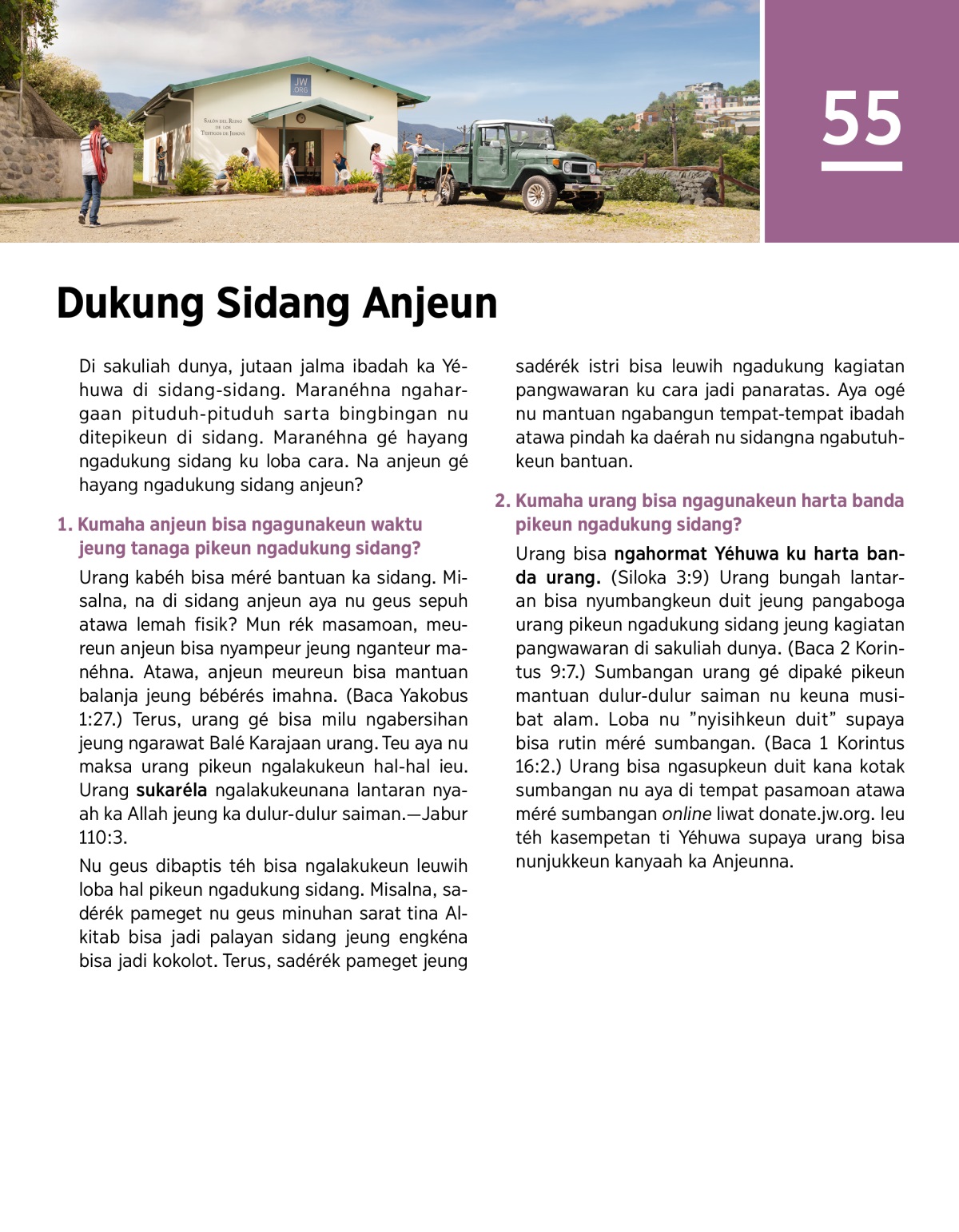 Di sakuliah dunya, jutaan jalma ibadah ka Yéhuwa di sidang-sidang. Maranéhna ngahargaan pituduh-pituduh sarta bingbingan nu ditepikeun di sidang. Maranéhna gé hayang ngadukung sidang ku loba cara. Na anjeun gé hayang ngadukung sidang anjeun?