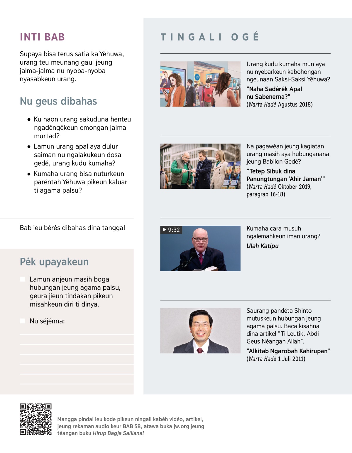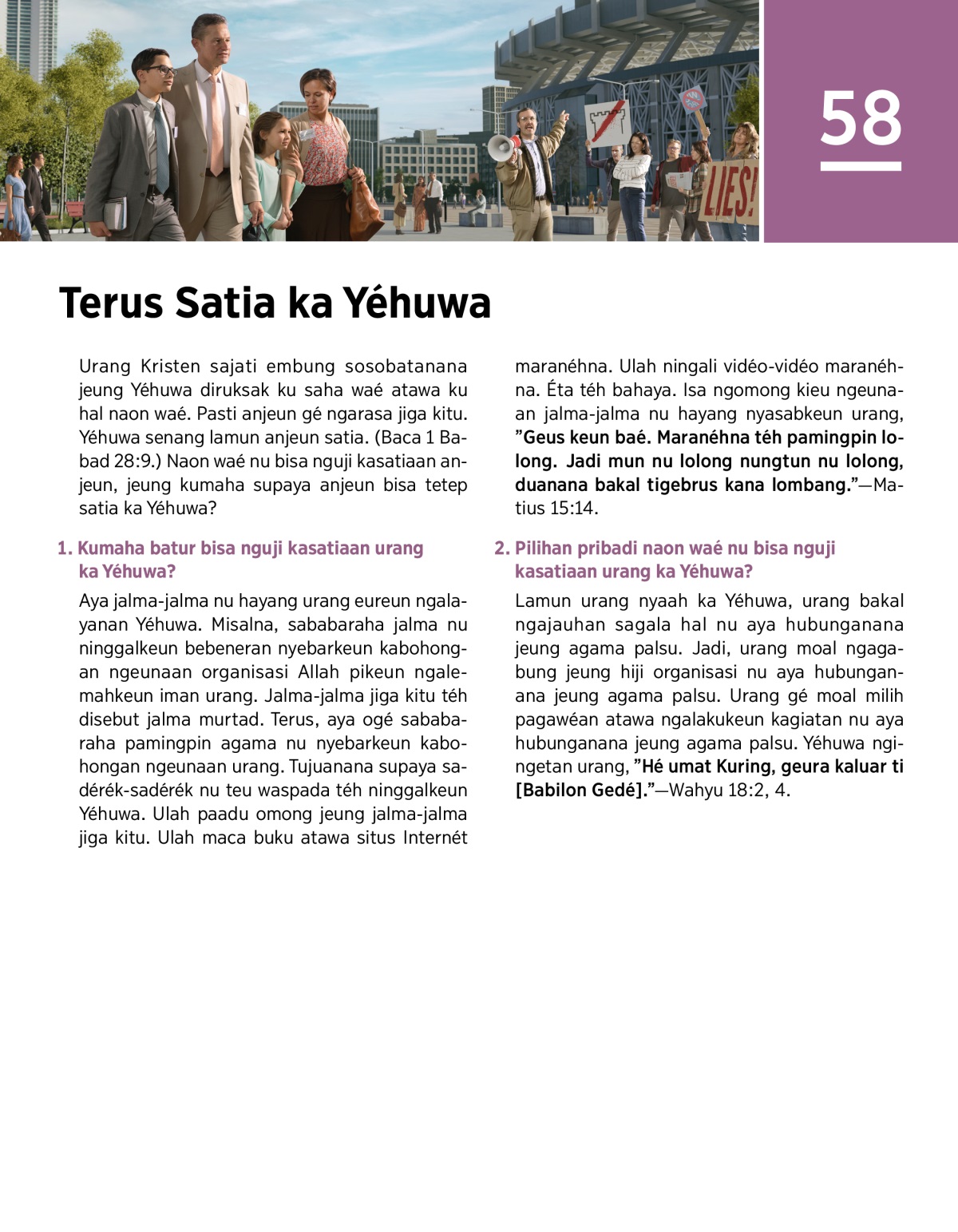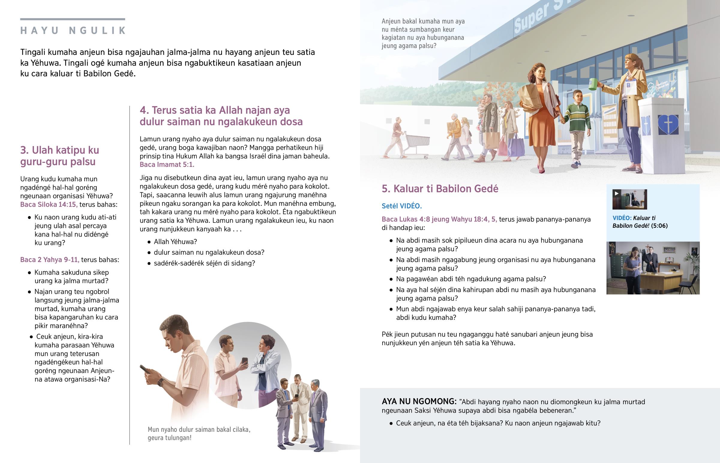 Tingali kumaha anjeun bisa ngajauhan jalma-jalma nu hayang anjeun teu satia ka Yéhuwa. Tingali ogé kumaha anjeun bisa ngabuktikeun kasatiaan anjeun ku cara kaluar ti Babilon Gedé.