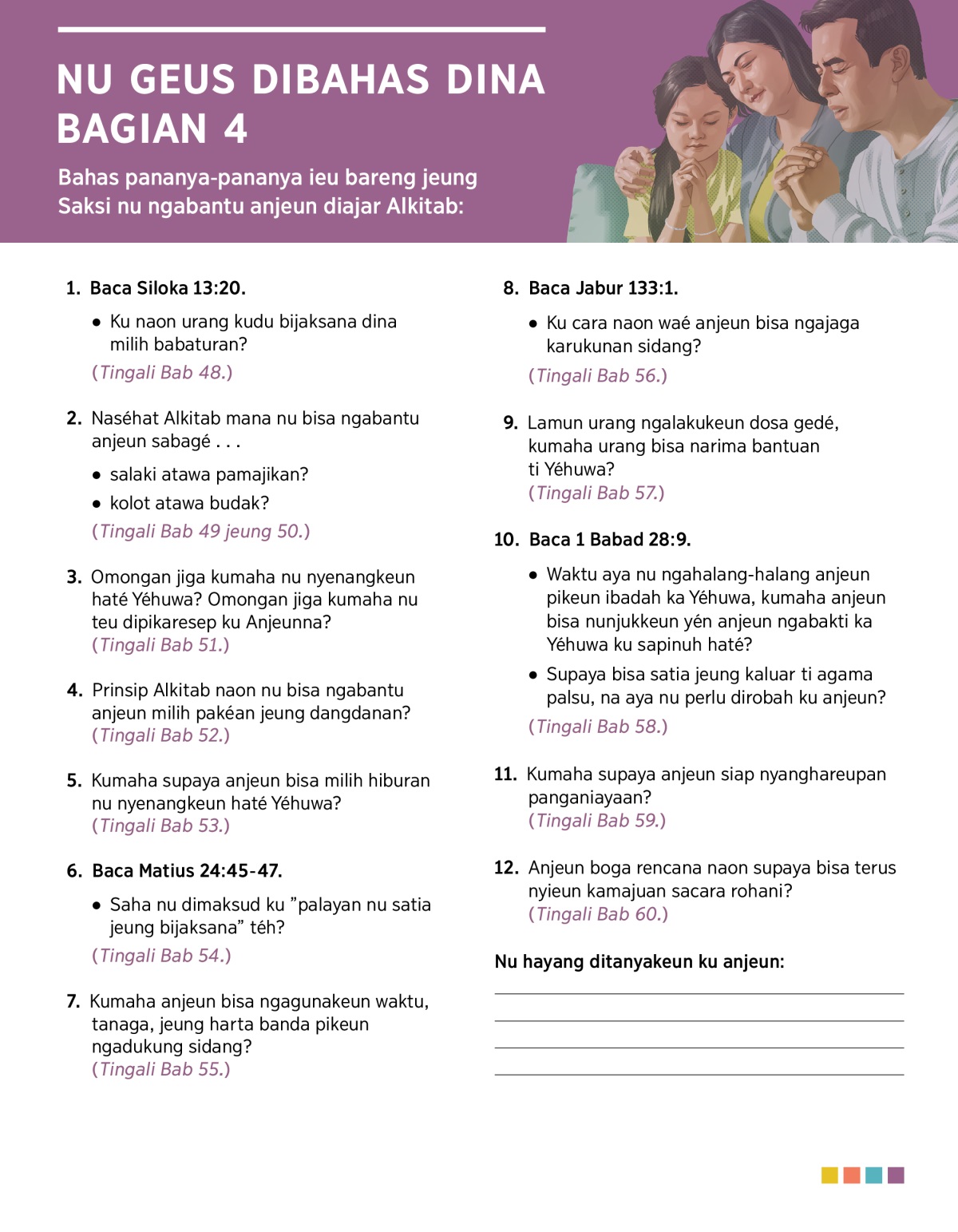 Bahas pananya-pananya ieu bareng jeung Saksi nu ngabantu anjeun diajar Alkitab: