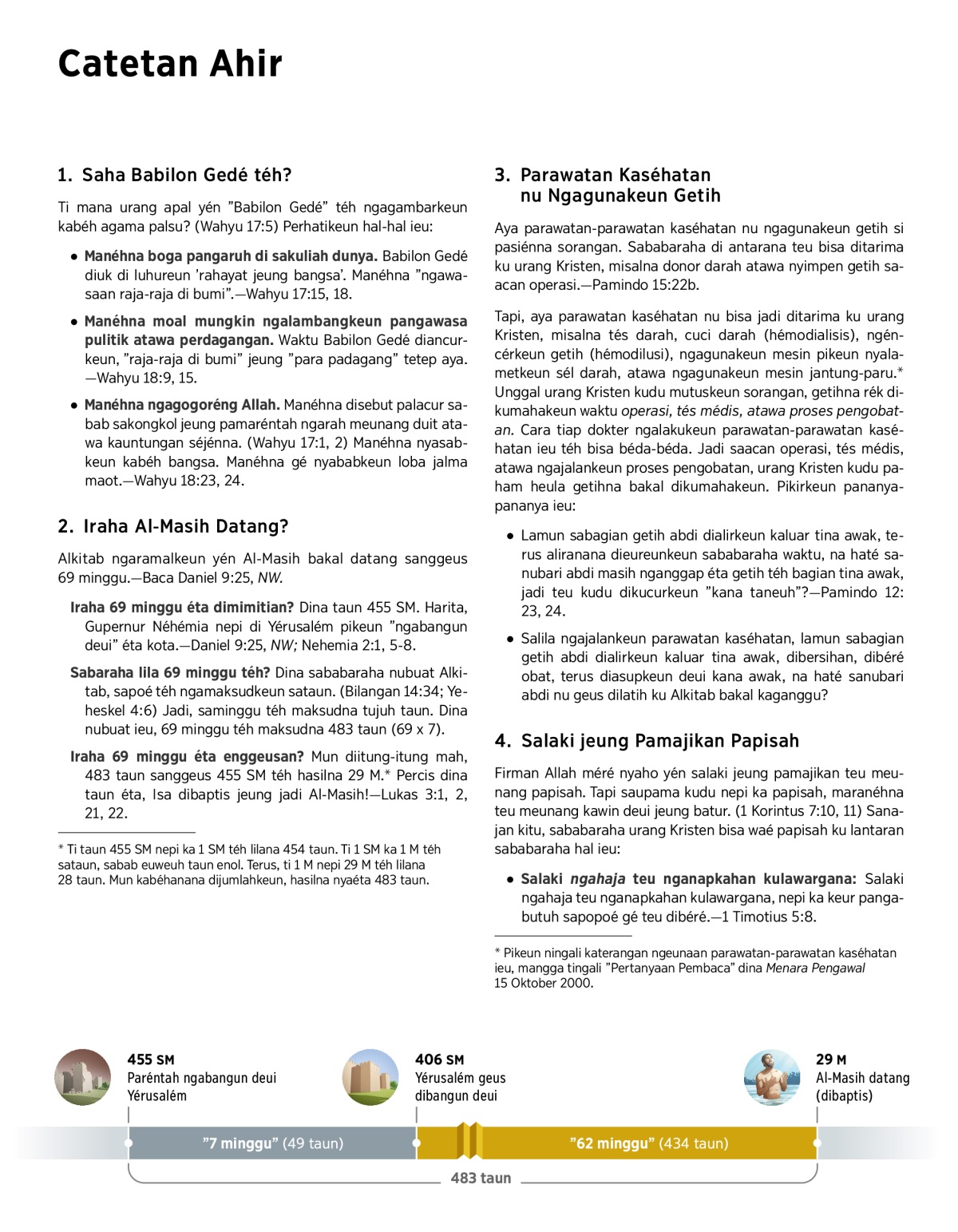 Iraha 69 minggu éta enggeusan? Mun diitung-itung mah, 483 taun sanggeus 455 SM téh hasilna 29 M.a Percis dina taun éta, Isa dibaptis jeung jadi Al-Masih!—Lukas 3:1, 2, 21, 22.