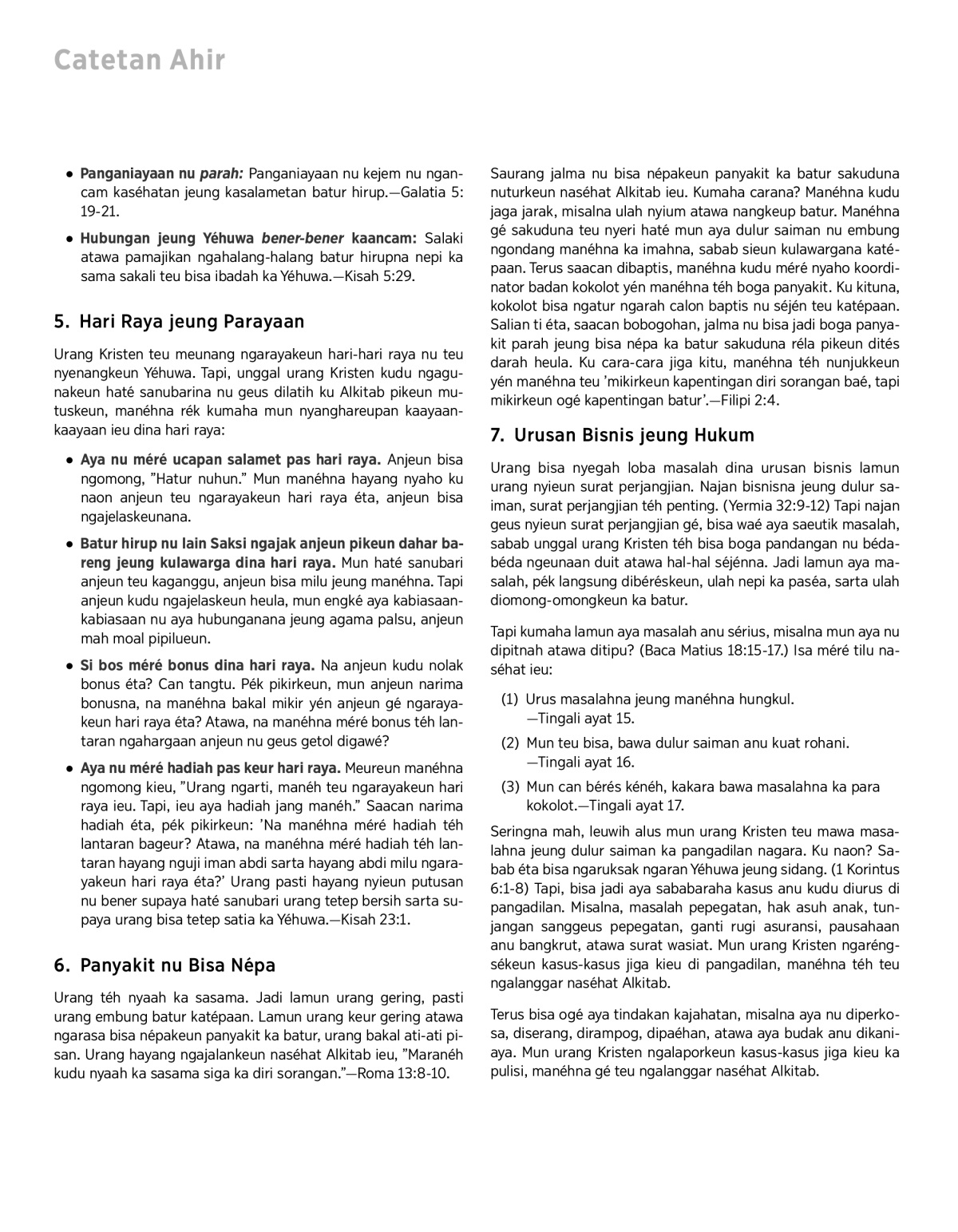 Urang Kristen teu meunang ngarayakeun hari-hari raya nu teu nyenangkeun Yéhuwa. Tapi, unggal urang Kristen kudu ngagunakeun haté sanubarina nu geus dilatih ku Alkitab pikeun mutuskeun, manéhna rék kumaha mun nyanghareupan kaayaan-kaayaan ieu dina hari raya: