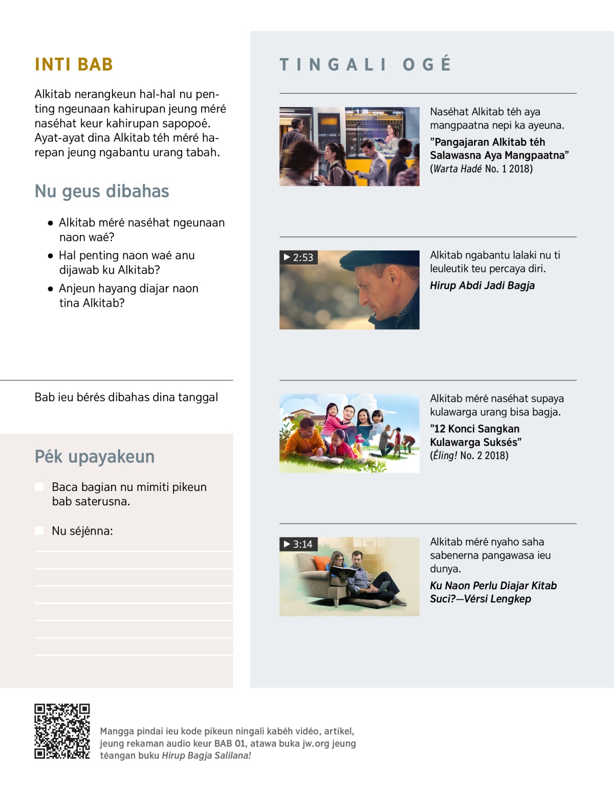 Mangga perhatikeun kumaha jalma-jalma meunang mangpaat tina Alkitab, kumaha carana supaya urang bisa resep maca Alkitab, jeung ku naon urang butuh bantuan pikeun diajar Alkitab.