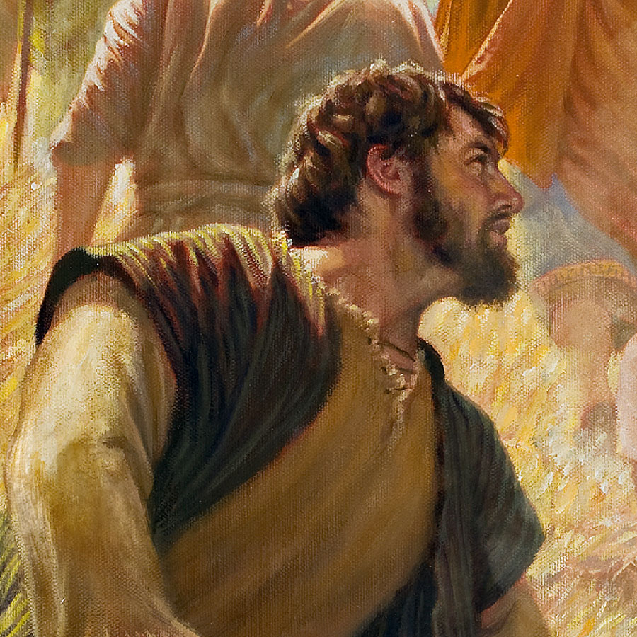 Pàgina 46 Estêvão é acusado diante do Sinédrio. Saduceus ricos aparecem em segundo plano, e fariseus ultraortodoxos em primeiro plano.