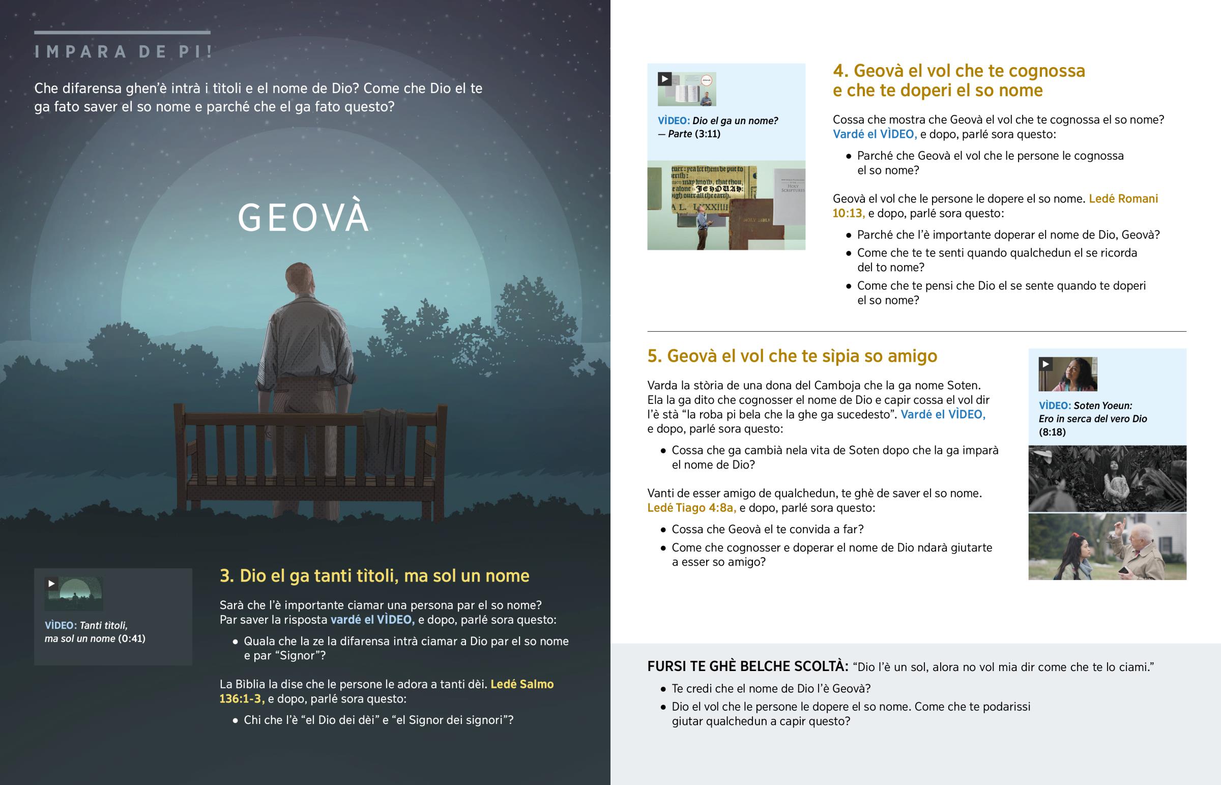 Geovà l’è el nome del vero Dio. Lu el vol che noantri semo so amighi. Par quela che l’è importante cognosser e doperar el nome de Dio.