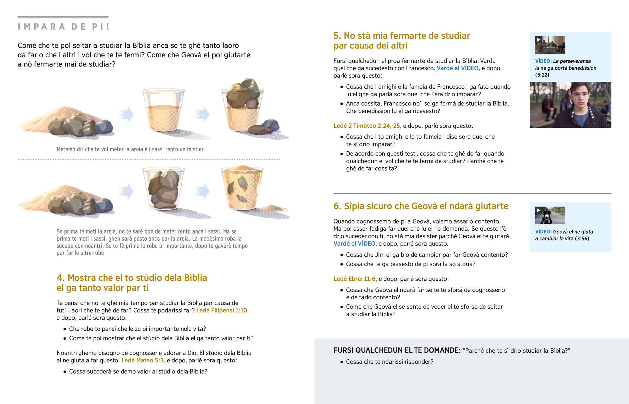 Studiar la Bìblia la ze la meio roba che una persona la pol far. Ma fursi te pensi che no te sarè bon de seitar a studiarla. Ma parché che te ghè de seitar a studiar la Bìblia? Cossa che ndarà giutarte a seitar a studiar anca se te infronti dificoltà?