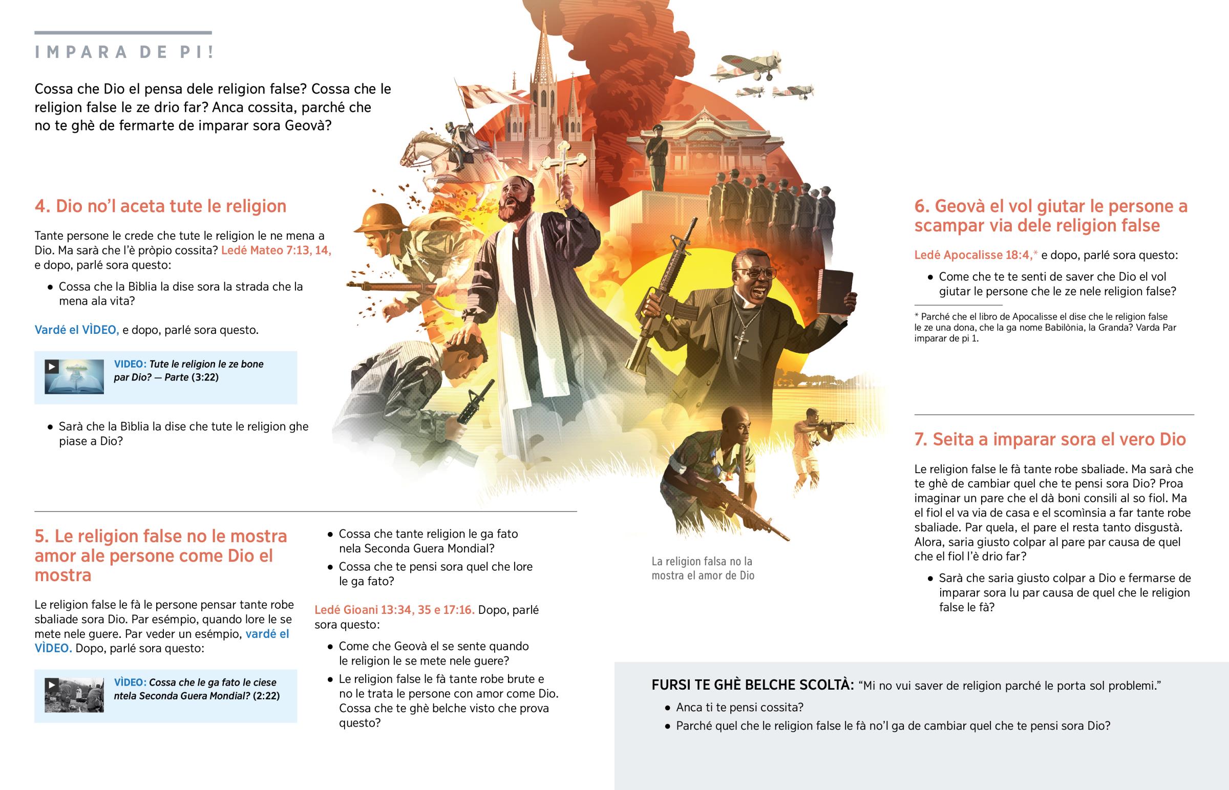 Le religion false le fà le persone pensar tante robe sbaliade sora Dio. Par esémpio, quando lore le se mete nele guere. Par veder un esémpio, vardé el VÌDEO. Dopo, parlé sora questo: