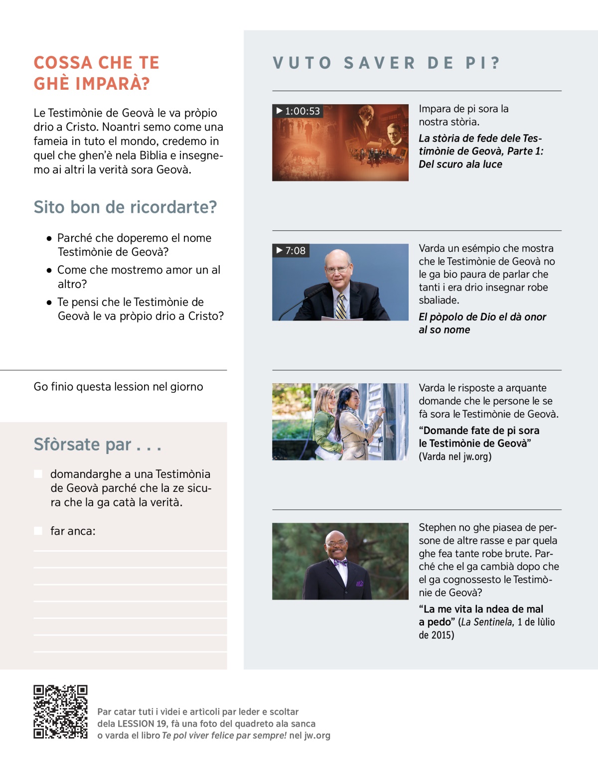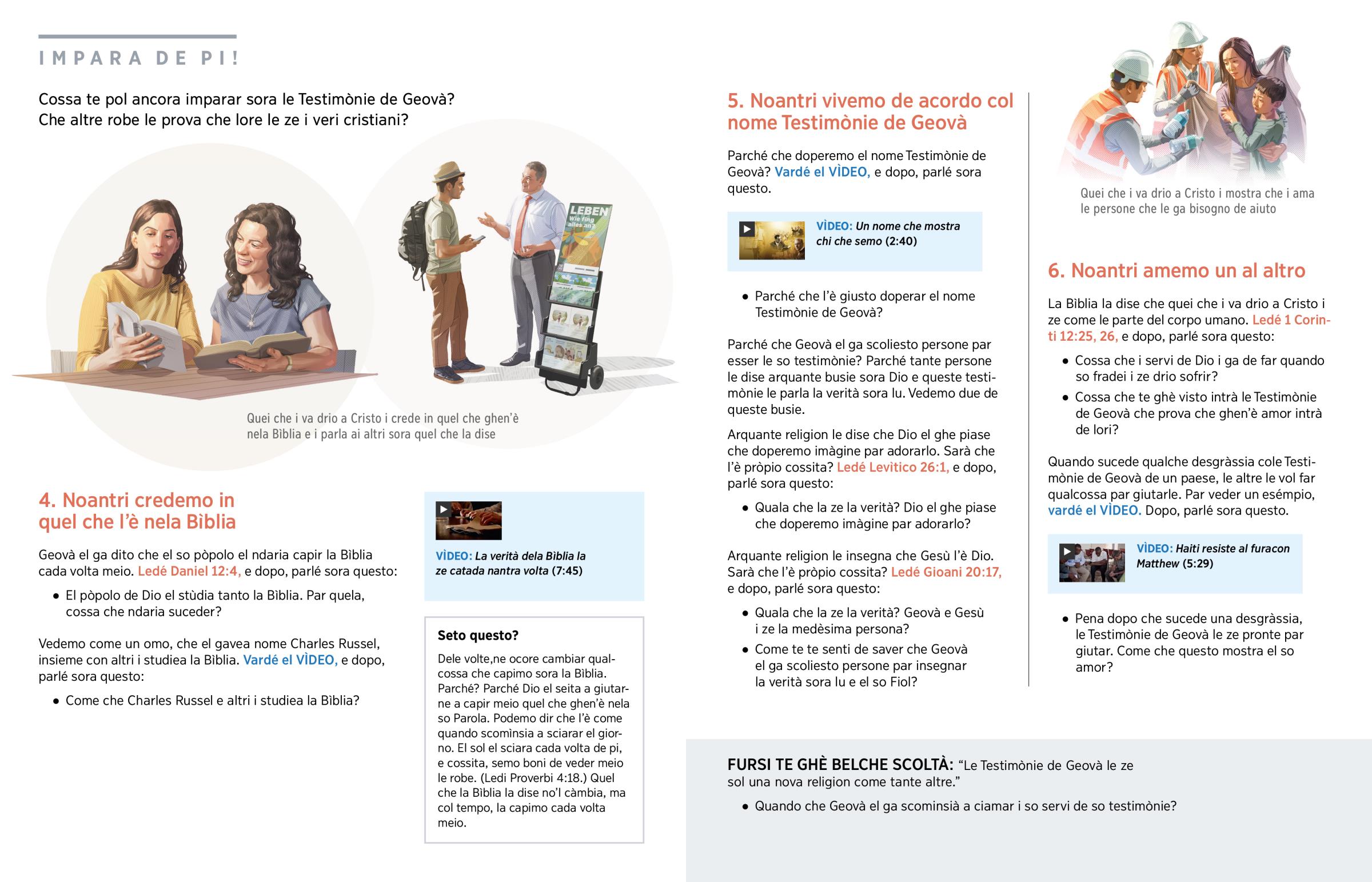 FURSI TE GHÈ BELCHE SCOLTÀ: “Le Testimònie de Geovà le ze sol una nova religion come tante altre.”