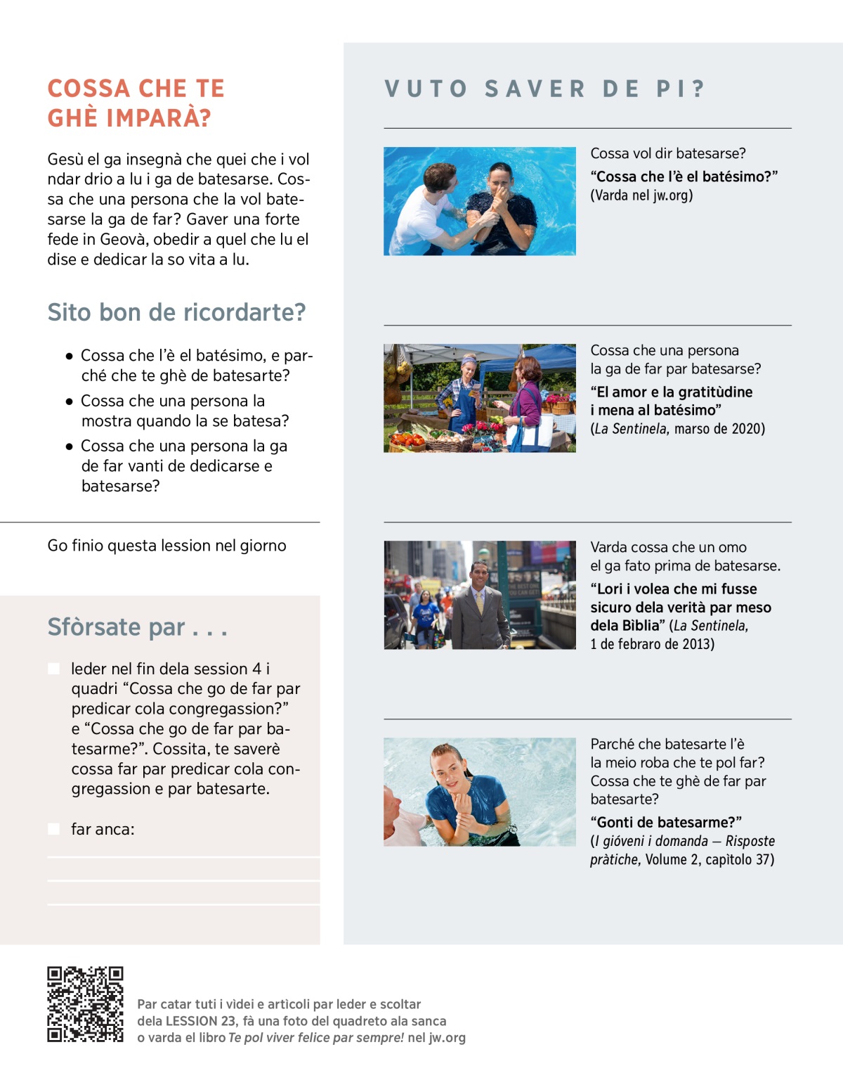 a Anca che una persona la sìpia belche batesada in nantra religion, la gavarà de batesarse come Testimònia de Geovà. Parché? Parché quela religion no la insegna quel che ghen’è nela Bìblia. (Varda Ati 19:1-5 e la lession 13.)