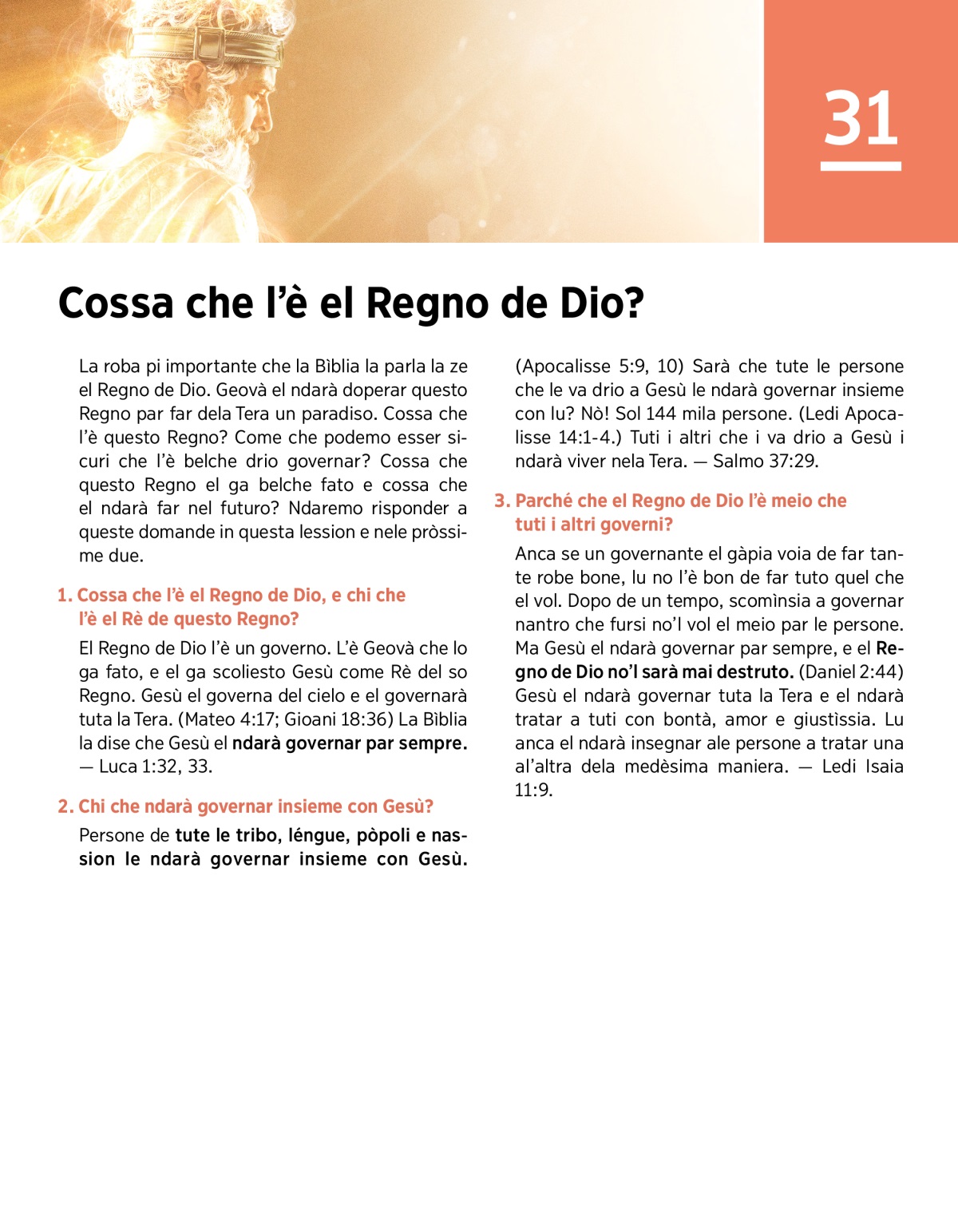 1. Cossa che l’è el Regno de Dio, e chi che l’è el Rè de questo Regno?