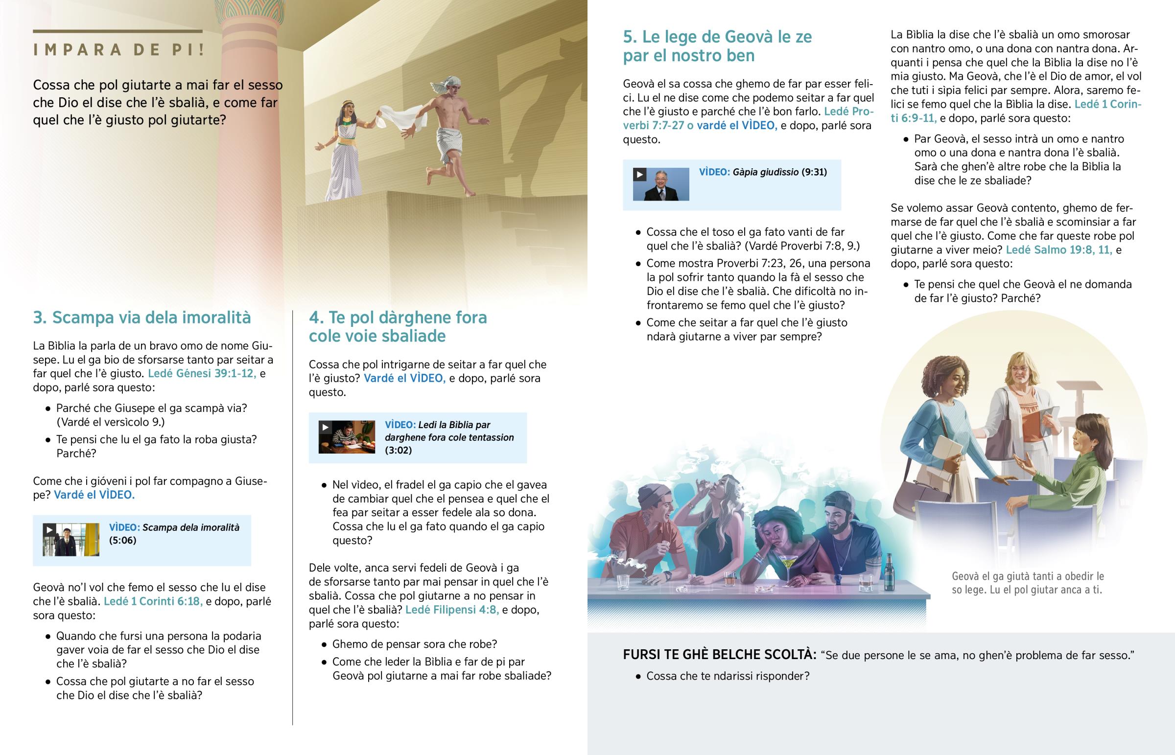 “Cossa che la Bìblia la dise sora ndar de star insieme sensa esser maridadi?” (Varda nel jw.org)