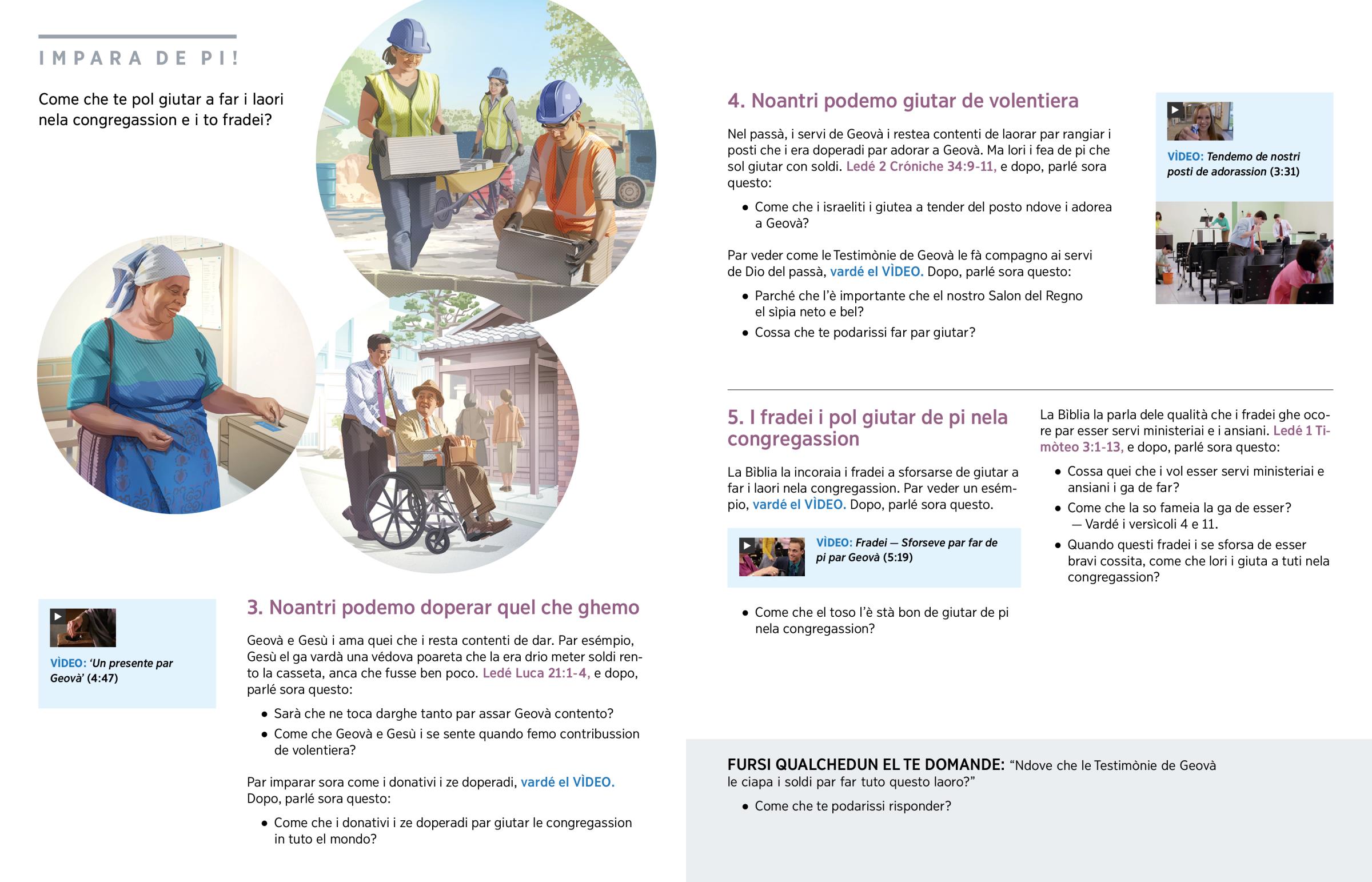 1. Come che te pol doperar el to tempo e la to forsa par far i laori nela congregassion e par giutar i fradei?