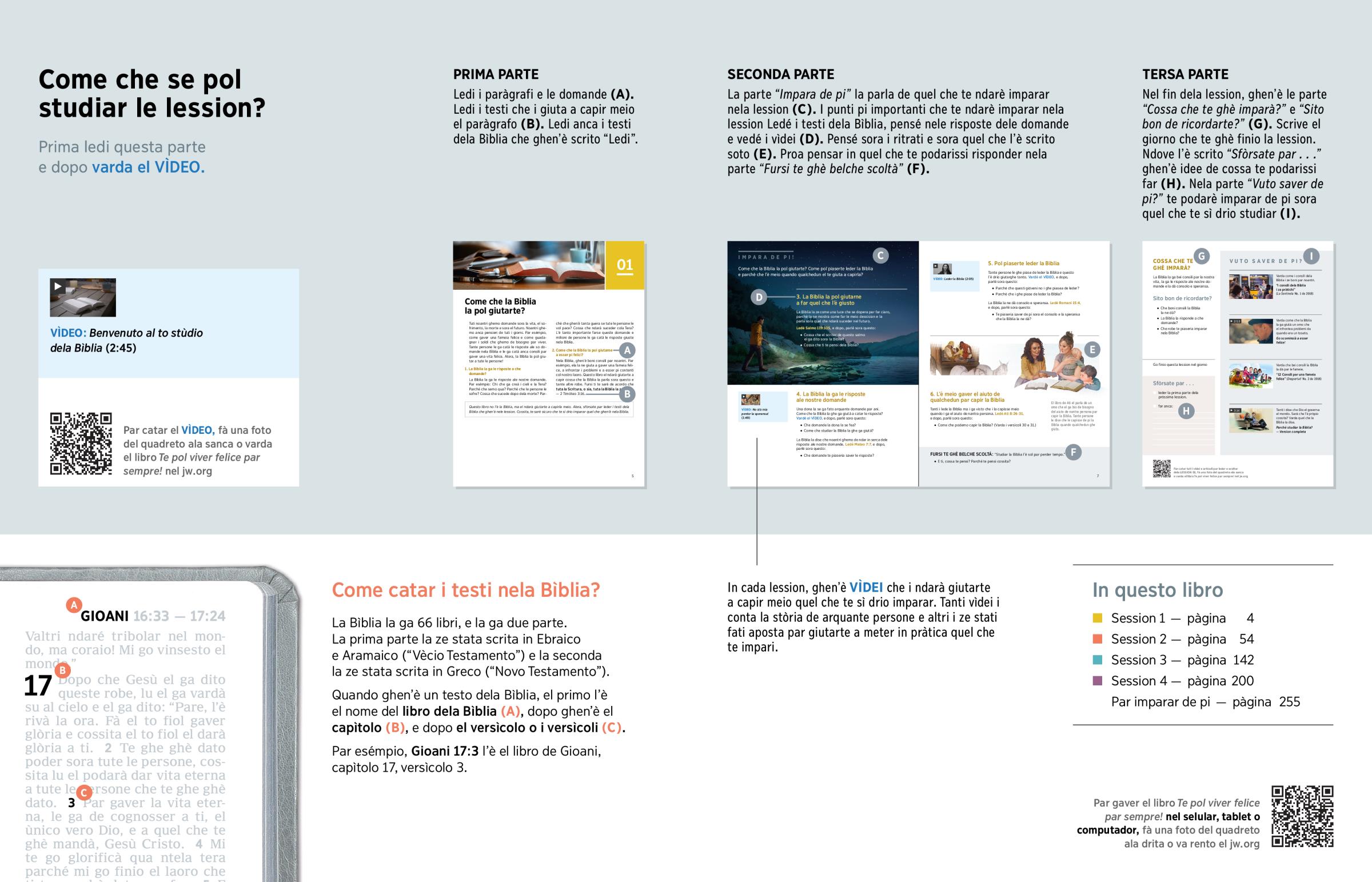 La parte “Impara de pi” la parla de quel che te ndarè imparar nela lession (C). I punti pi importanti che te ndarè imparar nela lession Ledé i testi dela Bìblia, pensé nele risposte dele domande e vedé i vìdei (D).