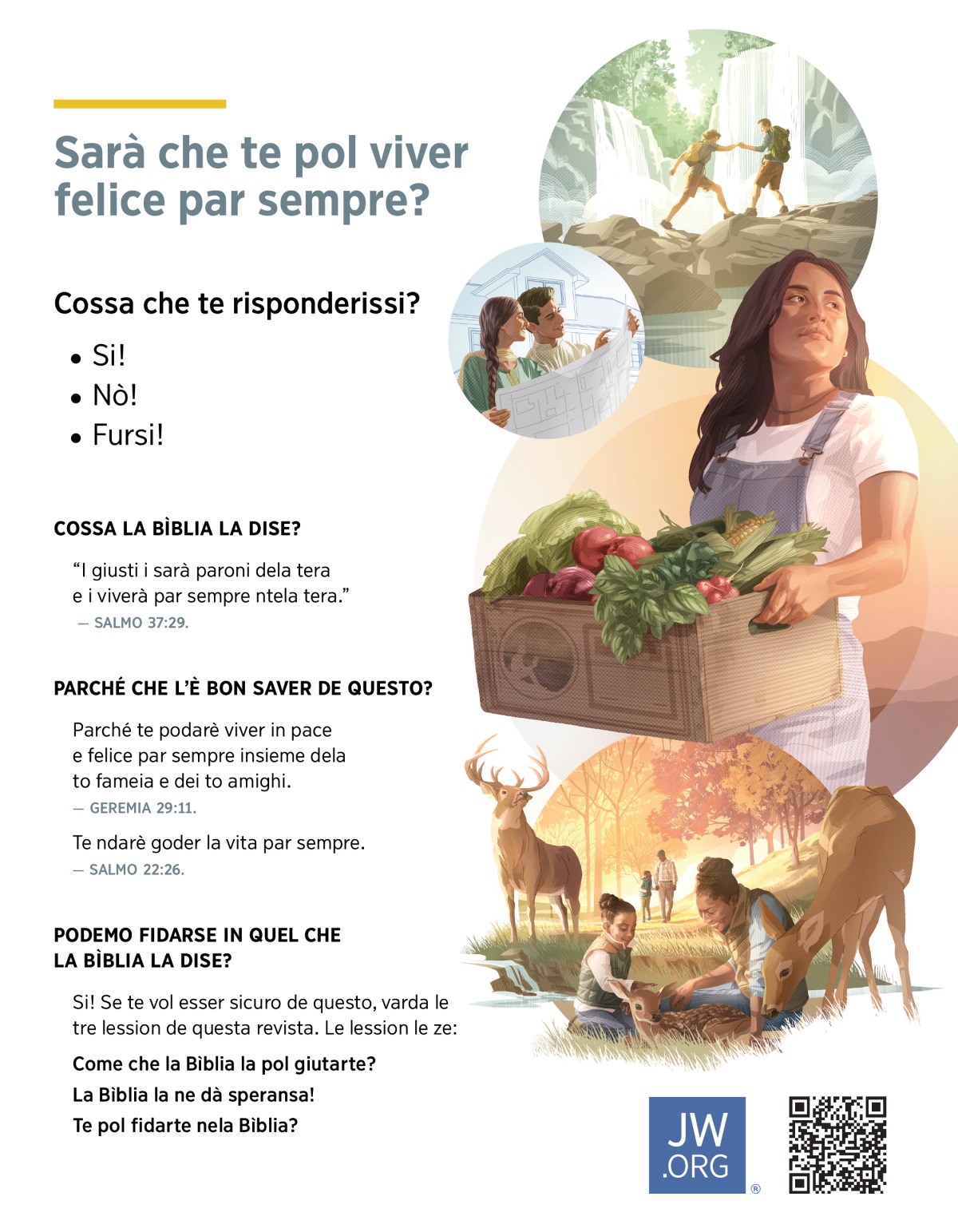 “I giusti i sarà paroni dela tera e i viverà par sempre ntela tera.” — SALMO 37:29.