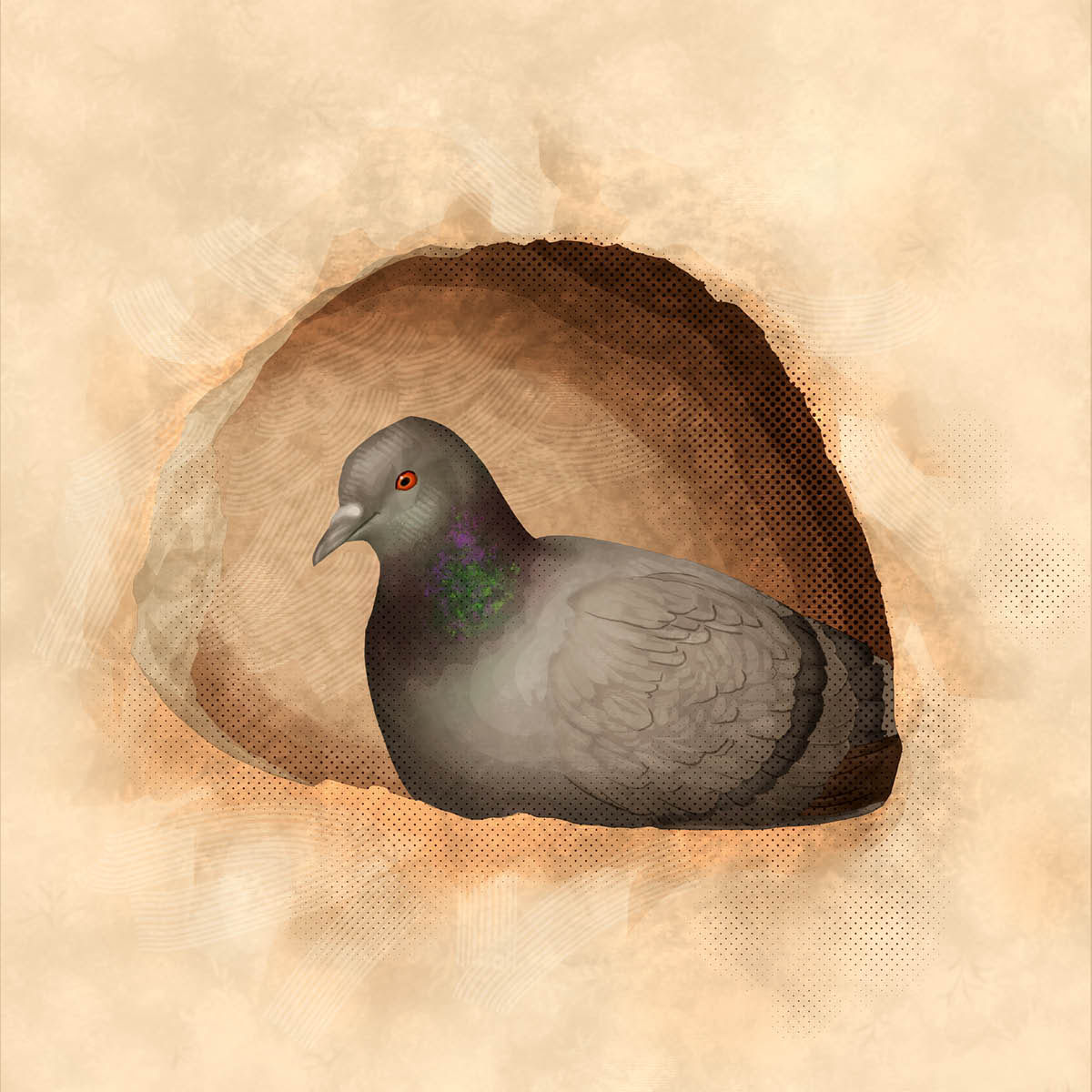 Colomba nte un buso de una parede