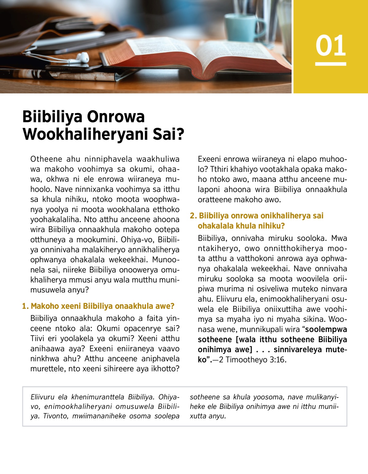 2. Biibiliya onrowa onikhaliherya sai ohakalala khula nihiku?