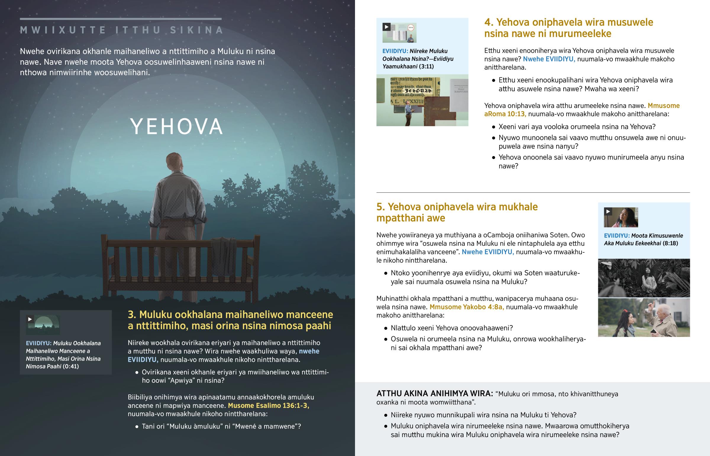Etthu xeeni enooniherya wira Yehova oniphavela wira musuwele nsina nawe? Nwehe EVIIDIYU, nuumala-vo mwaakhule makoho anittharelana.