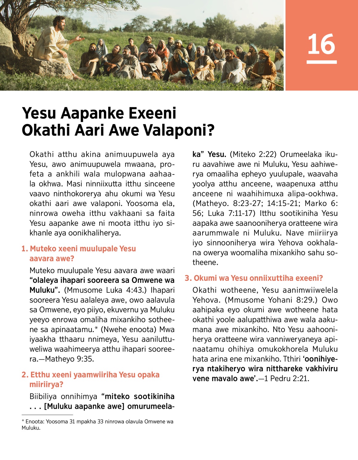 Itthu sootikiniha Yesu aapaka awe, sinooniherya exeeni?