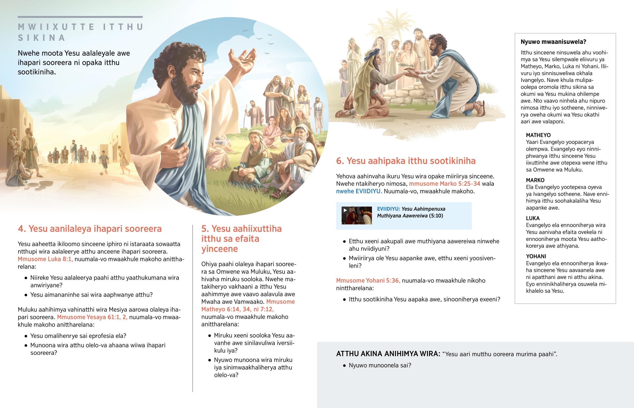 Itthu sinceene ninsuwela ahu voohimya sa Yesu silempwale eliivuru ya Matheyo, Marko, Luka ni Yohani. Iliivuru iyo sinnisuweliwa okhala Ivangelyo. Nave khula mulipa-oolepa oromola itthu sikina sa okumi wa Yesu mukina ohilempe awe. Nto vaavo ninhela ahu nipuro nimosa itthu iyo sotheene, ninniwerya oweha okumi wa Yesu okathi aari awe valaponi.