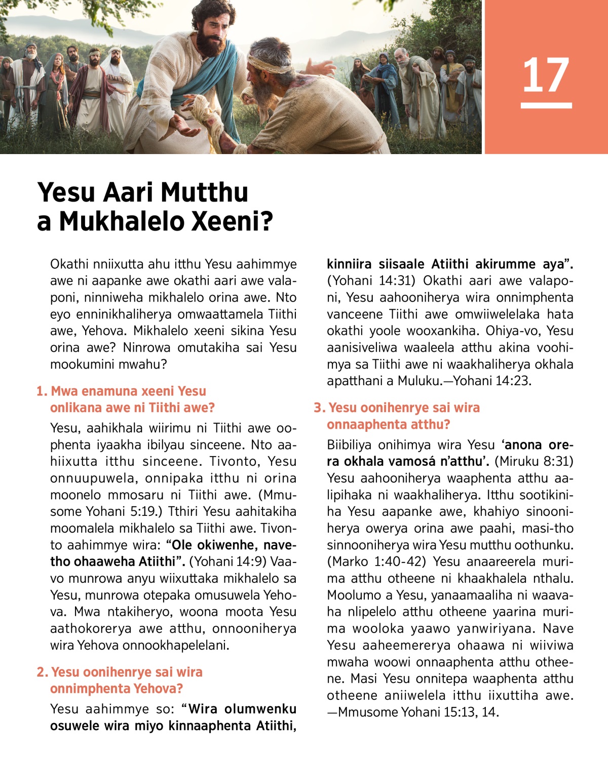 1. Mwa enamuna xeeni Yesu onlikana awe ni Tiithi awe?