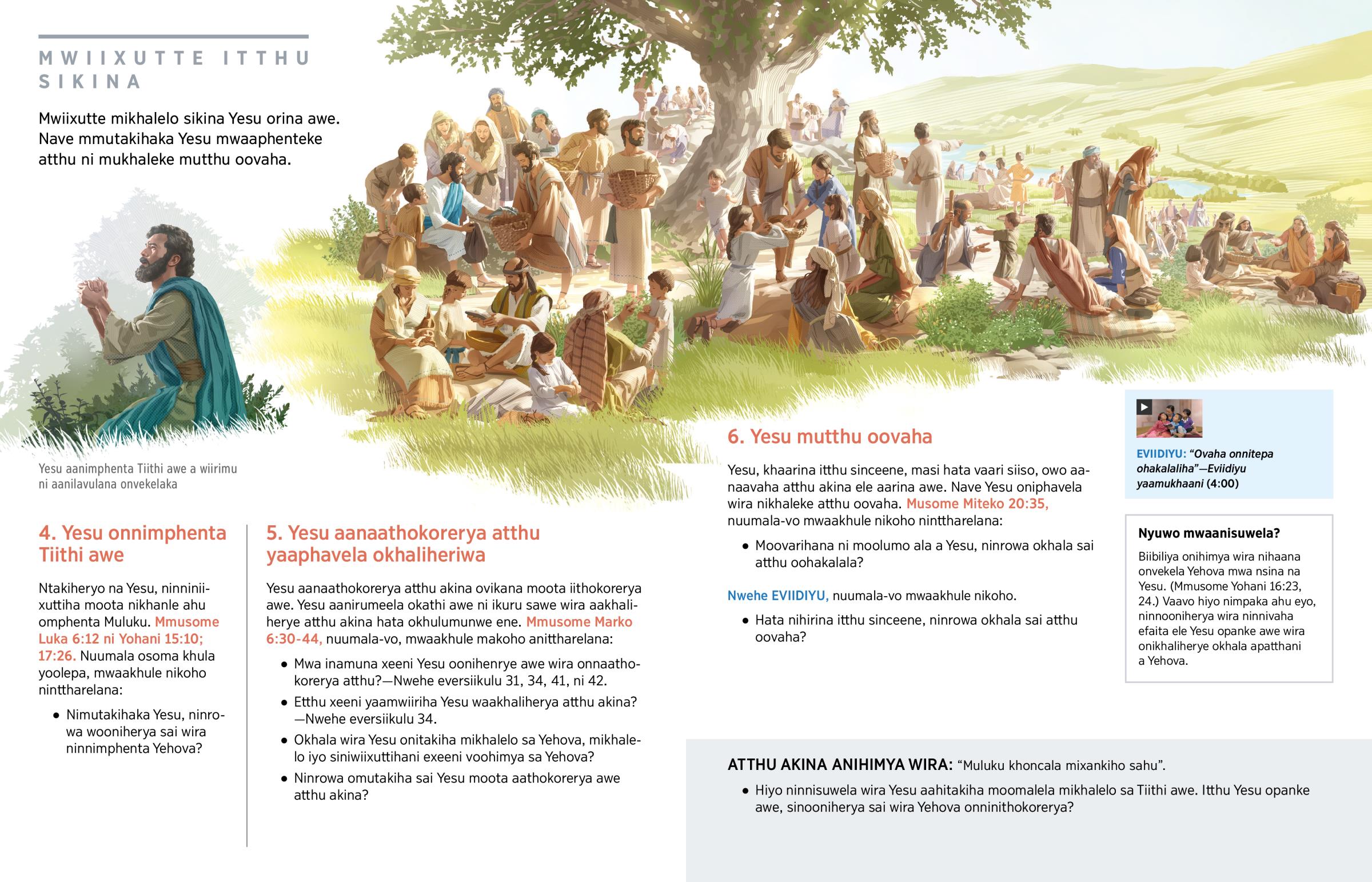 Mwa inamuna xeeni Yesu oonihenrye awe wira onnaathokorerya atthu?—Nwehe eversiikulu 31, 34, 41, ni 42.