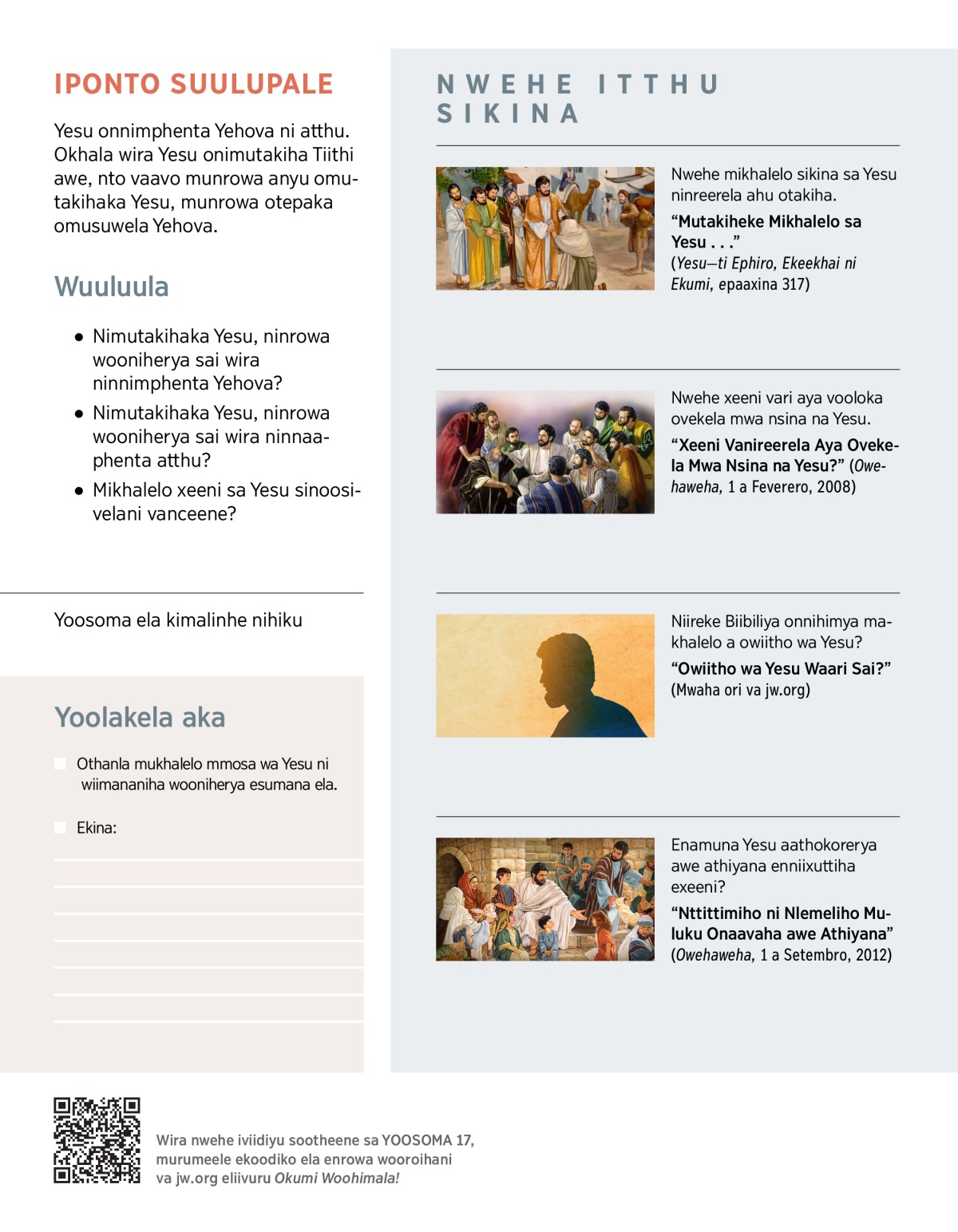 Nwehe mikhalelo sikina sa Yesu ninreerela ahu otakiha.