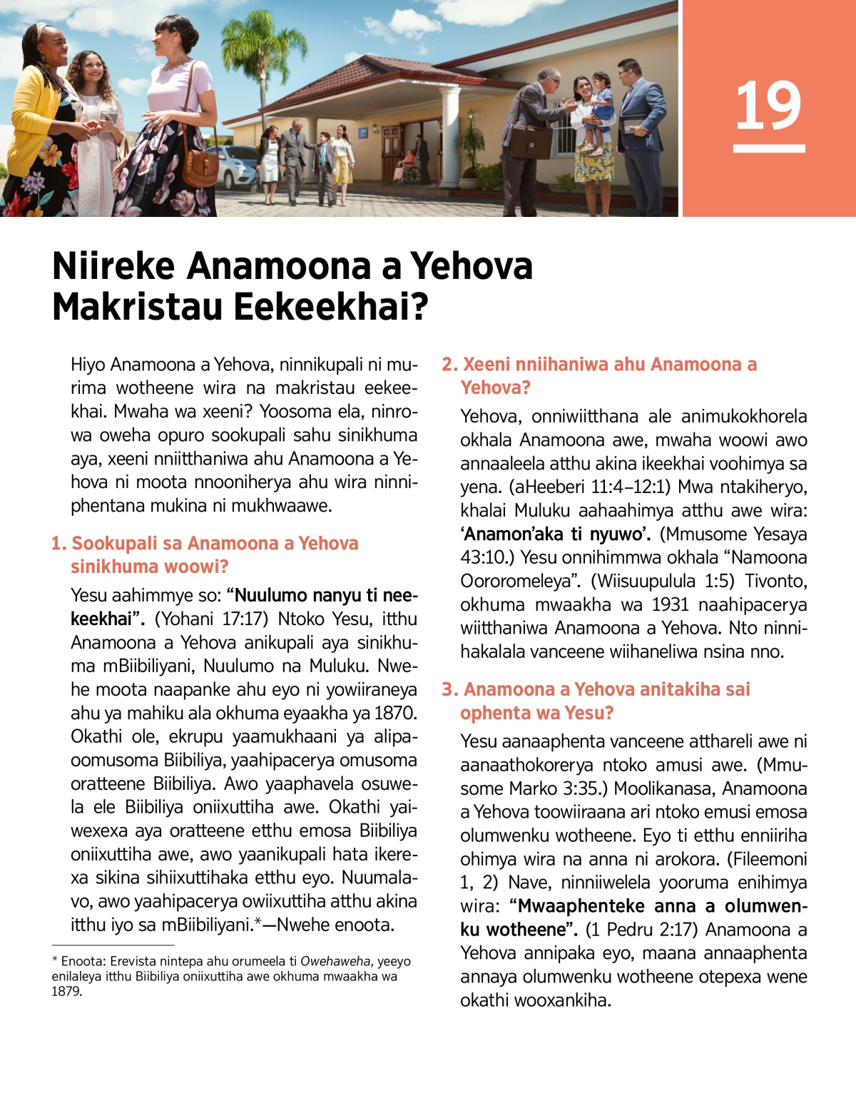 Nwehe itthu sikina sa yowiiraneya ya Anamoona a Yehova. Nave nwehe itthu sinooniherya wira Anamoona a Yehova makristau eekeekhai.