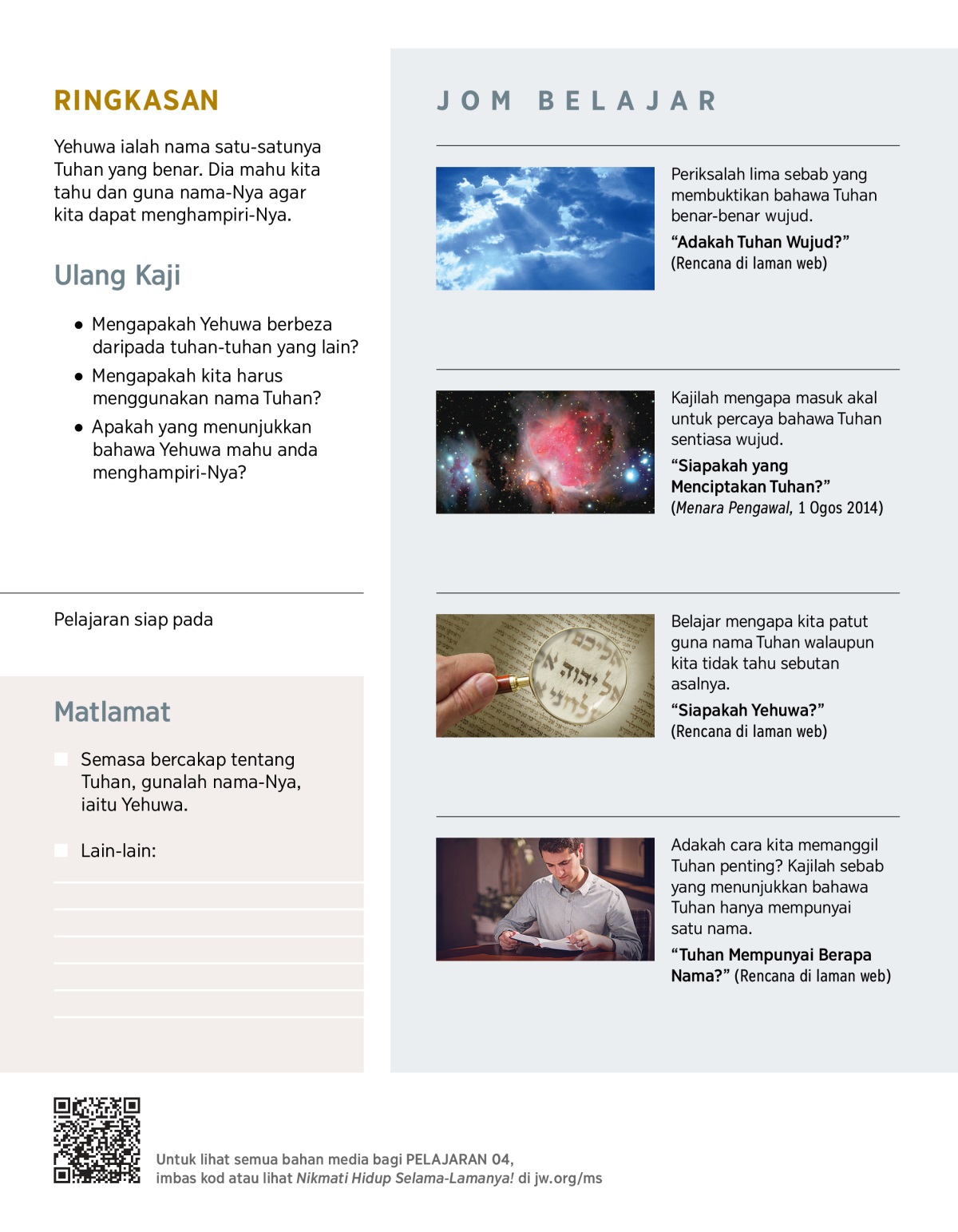1. Siapakah nama Tuhan, dan mengapakah kita yakin bahawa Dia mahu kita mengetahui nama-Nya?